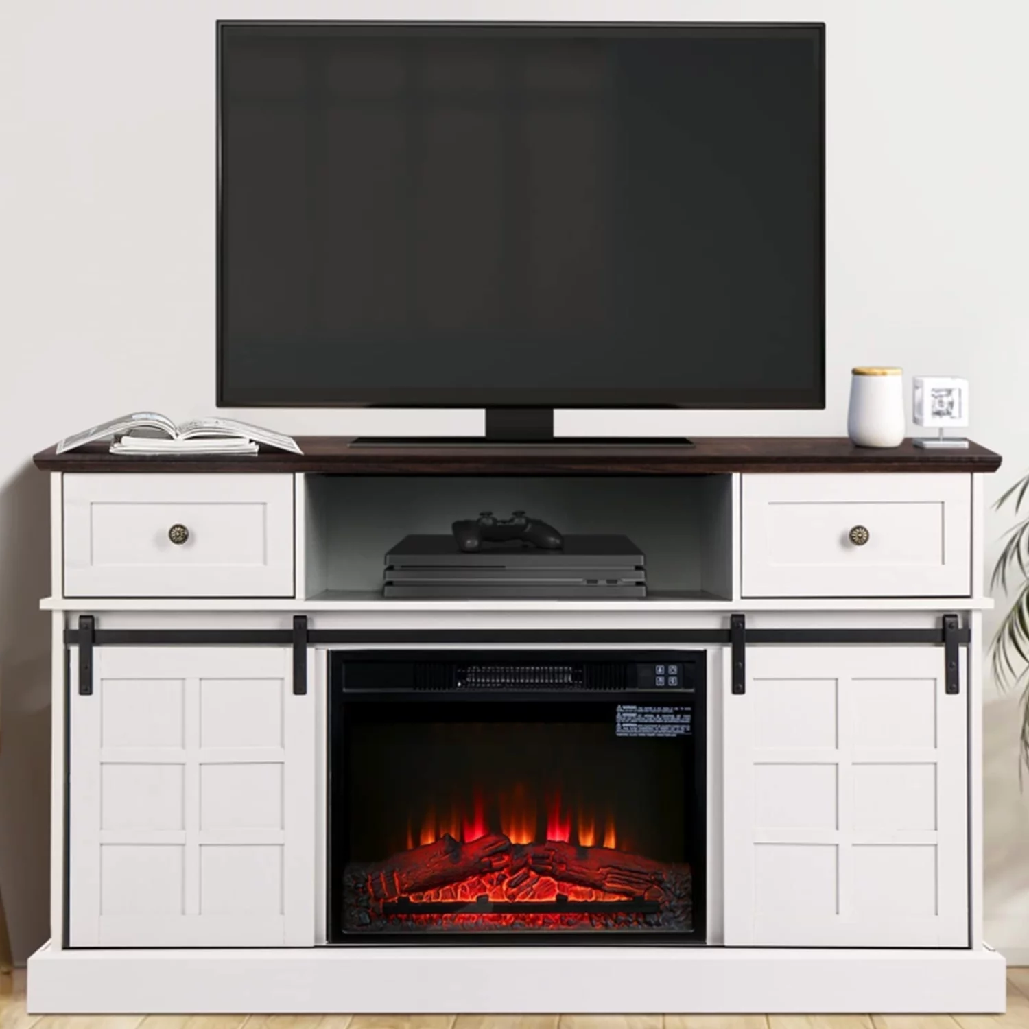 Jiekair Electric Fireplace TV Stands for TV's up to 65", Entertainment Center with 2 Slip Drawer, Modern Wood White