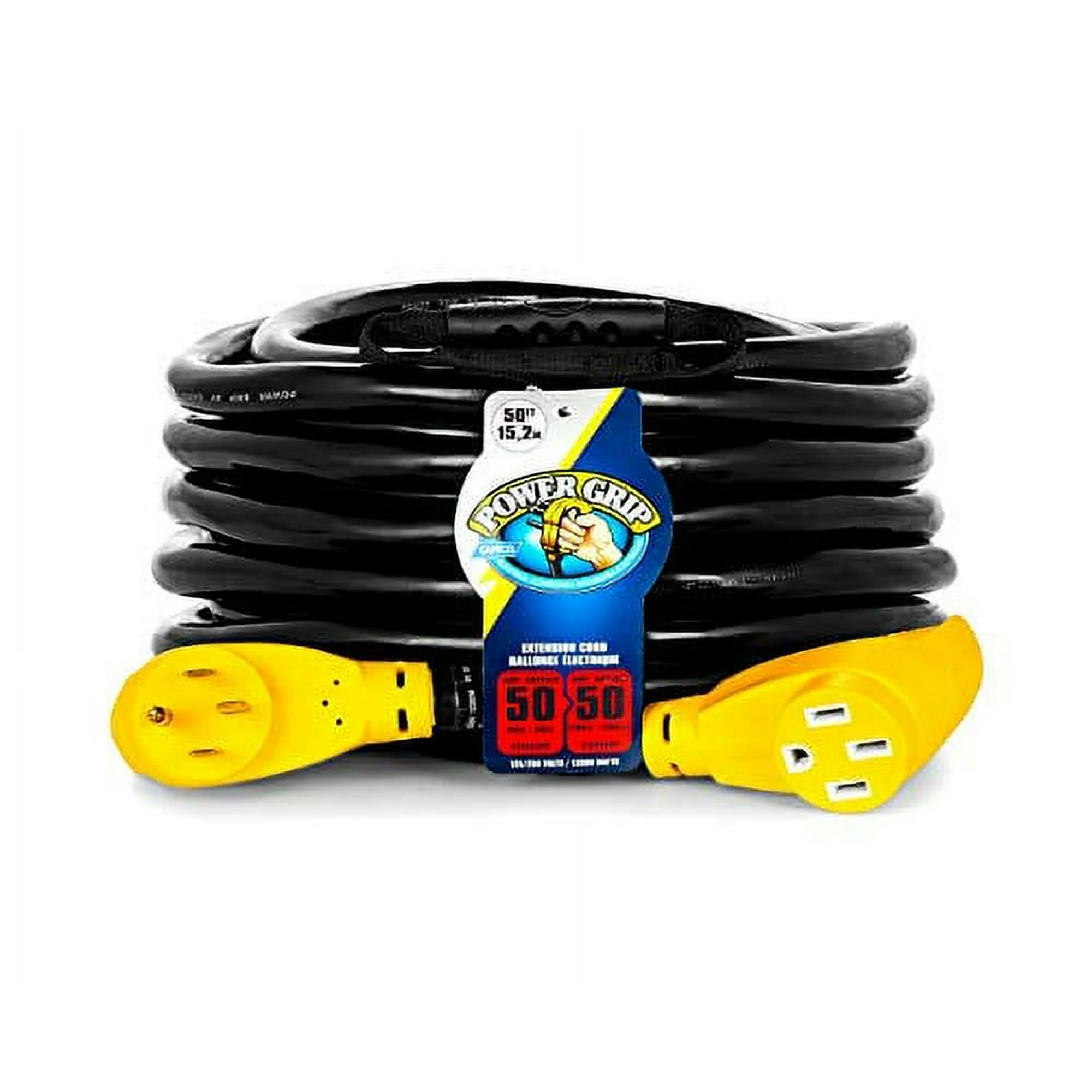 Camco Power Grip 50-Amp 50-Foot Camper/RV Extension Cord | Features Copper 6/3 + 8/1-Gauge Wires & Rated for 125/250 Volts/12,500 Watts (55199)