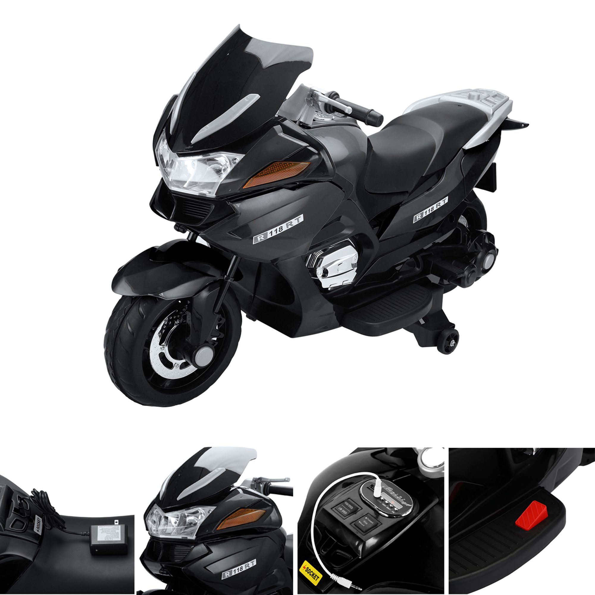 Hikids Electric Toy 3 Wheel Kids Ride On Motorcycle 12V Kids Electric Battery Powered Ride On Motorcycle w/ Training Wheels, Lights, Music - Black