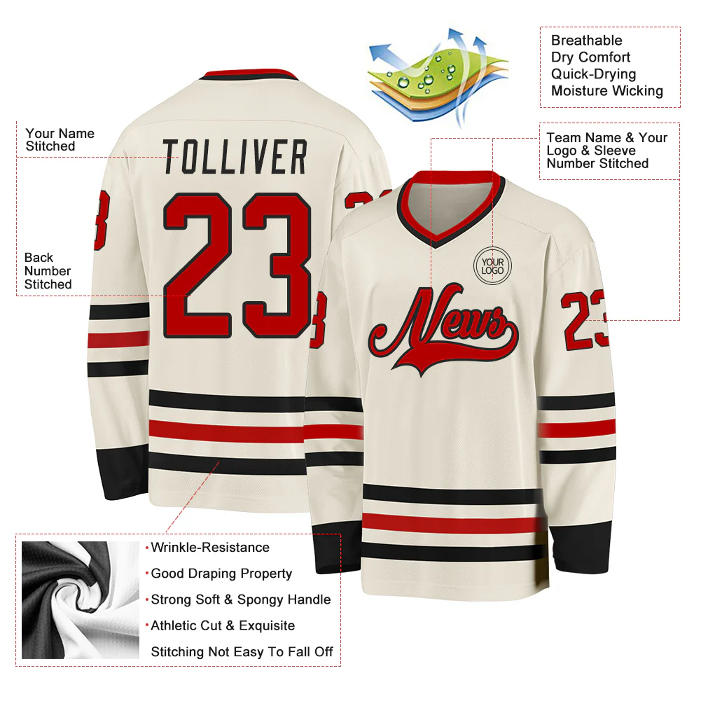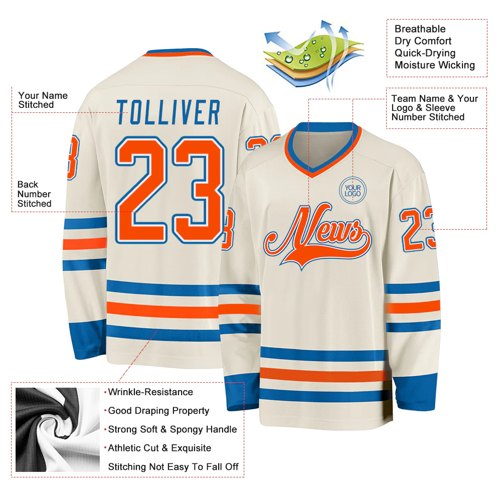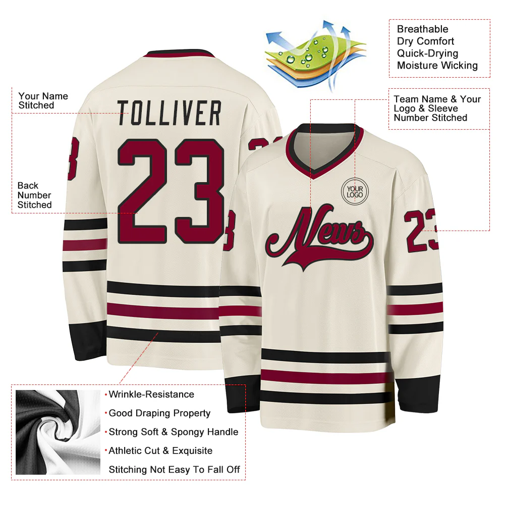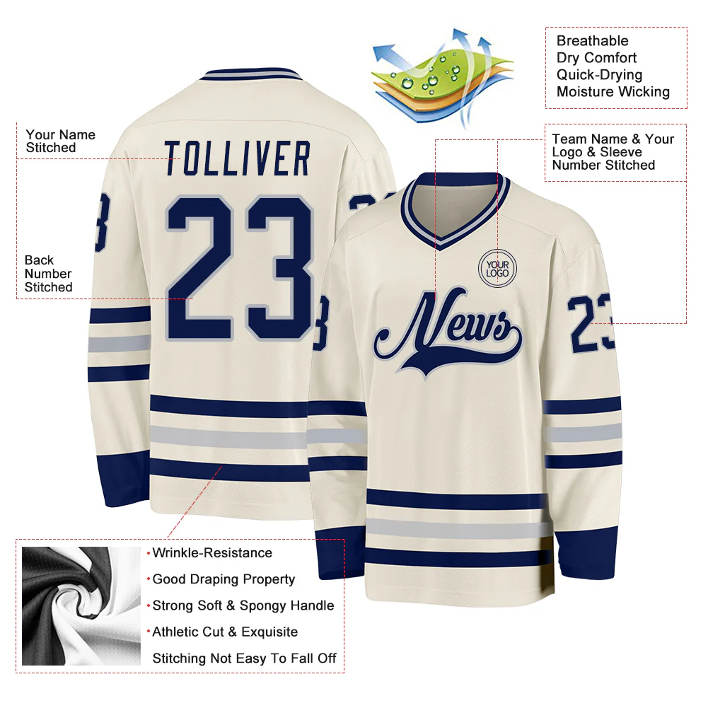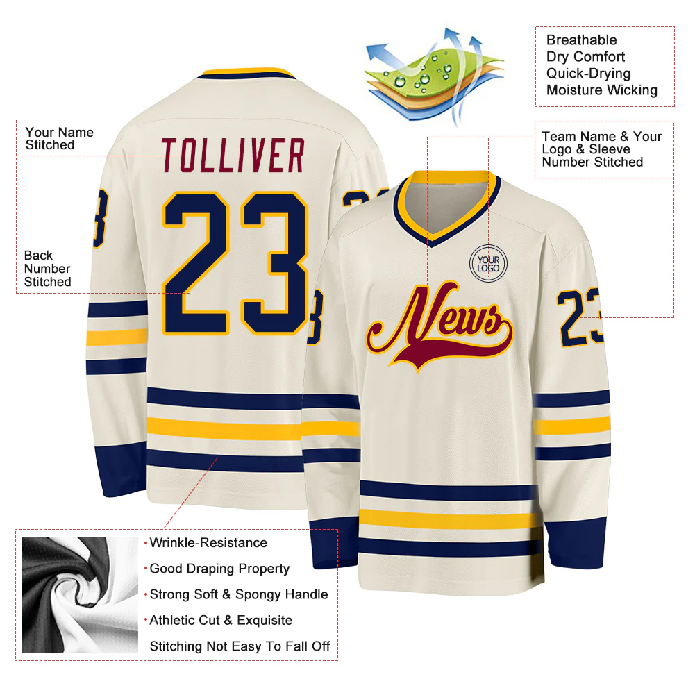 Custom Cream Navy Gold-Maroon Hockey Jersey