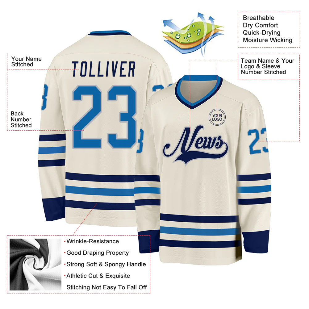 Custom Cream Blue-Navy Hockey Jersey