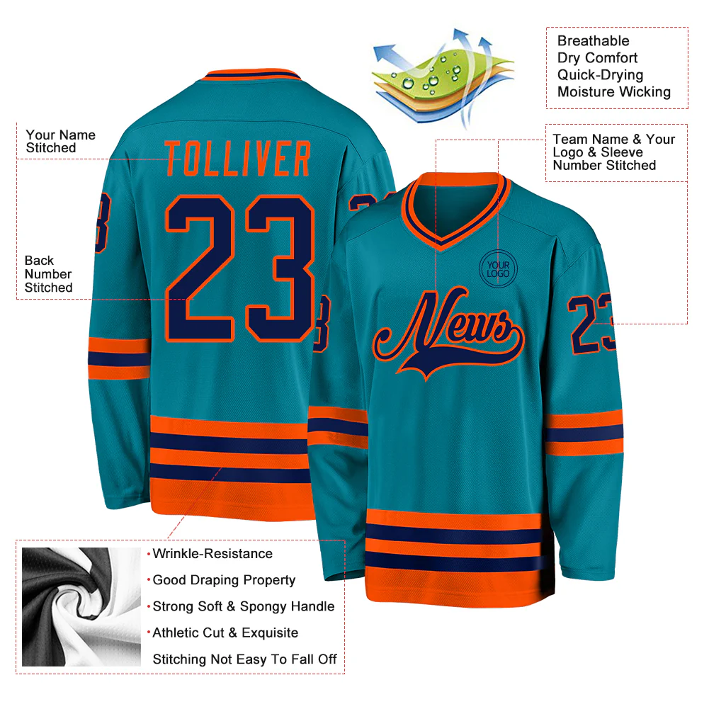 Custom Teal Navy-Orange Hockey Jersey