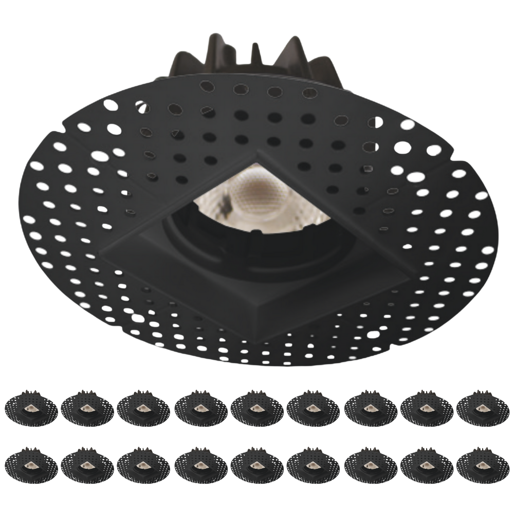 Perlglow 18 Pack 2 inch Trimless Mash Square Downlight Luminaire, Black Finish, LED Recessed Light Fixtures 5CCT.