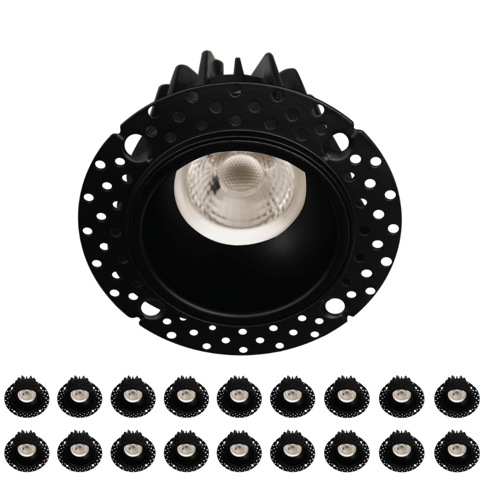 Perlglow 18 Pack 2 inch Trimless Round Black Downlight Luminaire, High-Output, LED Recessed Light Fixtures 5CCT.