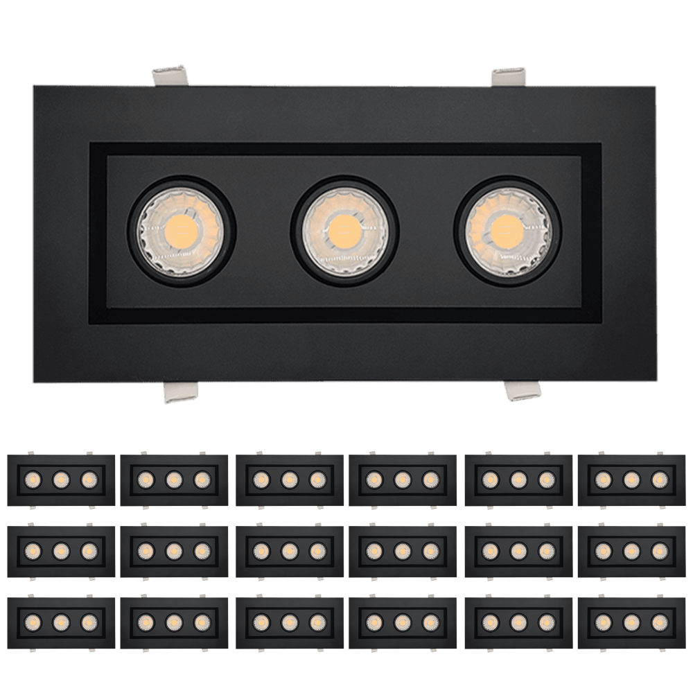 Perlglow 18 Pack 3 inch 3 Head Multiple Gimbal Downlight Luminaire, Black Finish, LED Recessed Light Fixtures 5CCT.