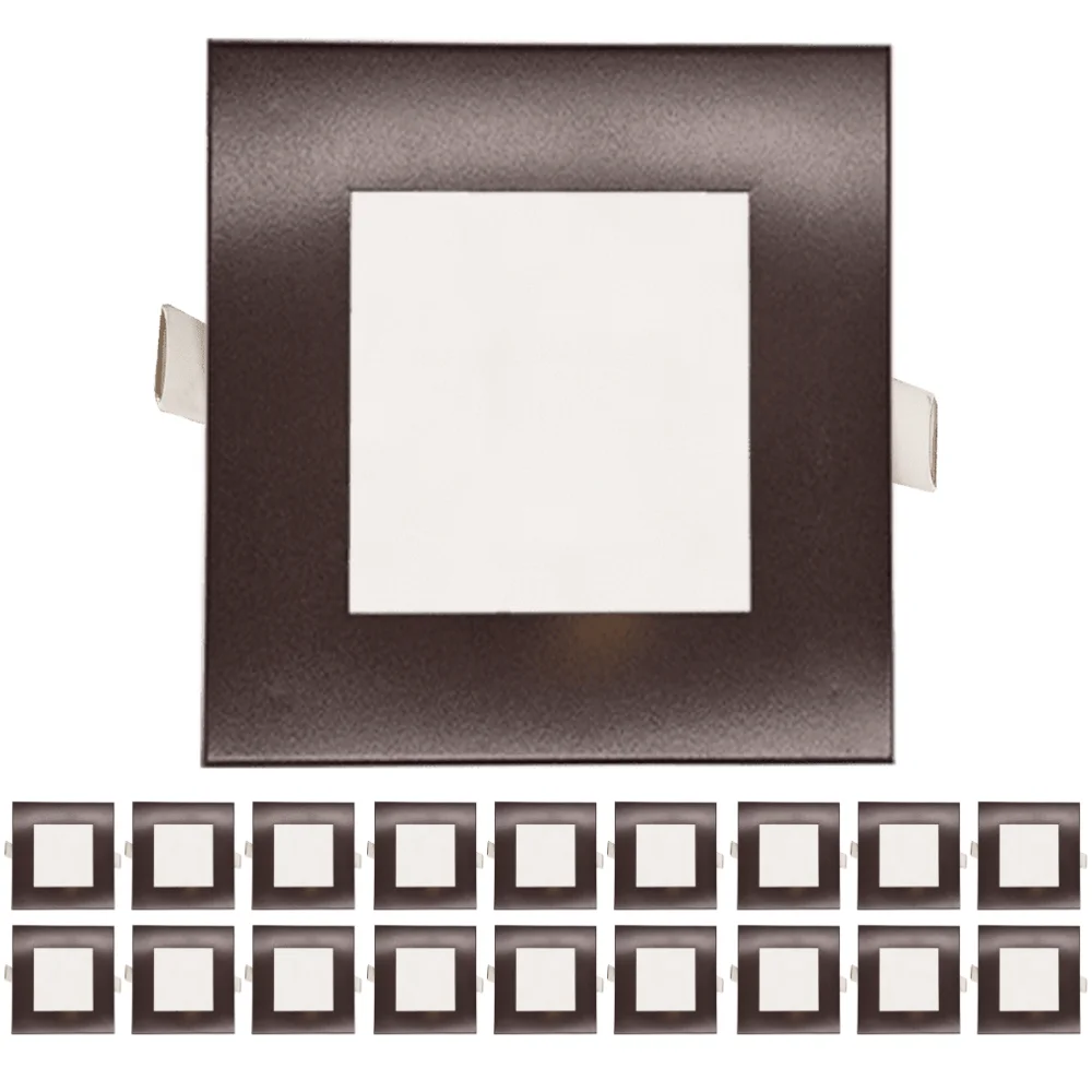 Perlglow 18 Pack 4 inch Slim Ultra-Thin Square Downlight Luminaire, Bronze Finish Trim, LED Recessed Light Fixtures 5CCT.