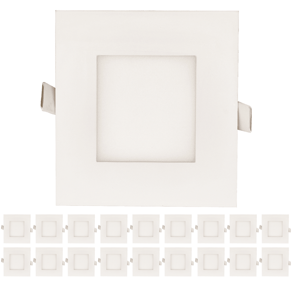 Perlglow 18 Pack 4 inch Slim Ultra-Thin Square Downlight Luminaire, White Finish, LED Recessed Light Fixtures 5CCT.