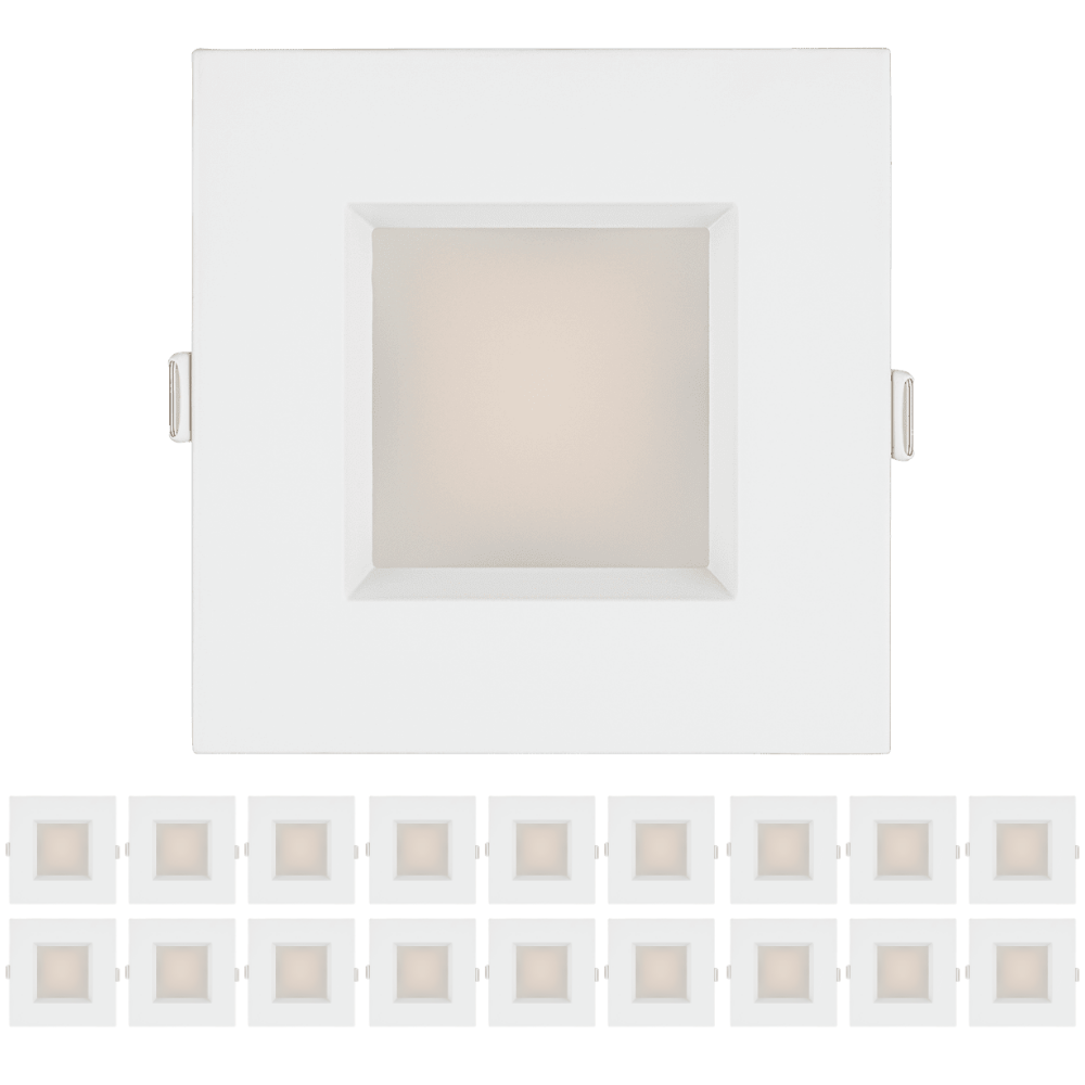 Perlglow 18 Pack 4 inch Slim Square Downlight Luminaire, White Finish, LED Recessed Light Fixtures 5CCT.