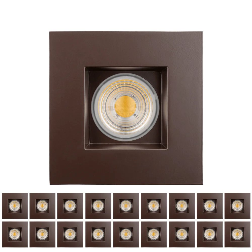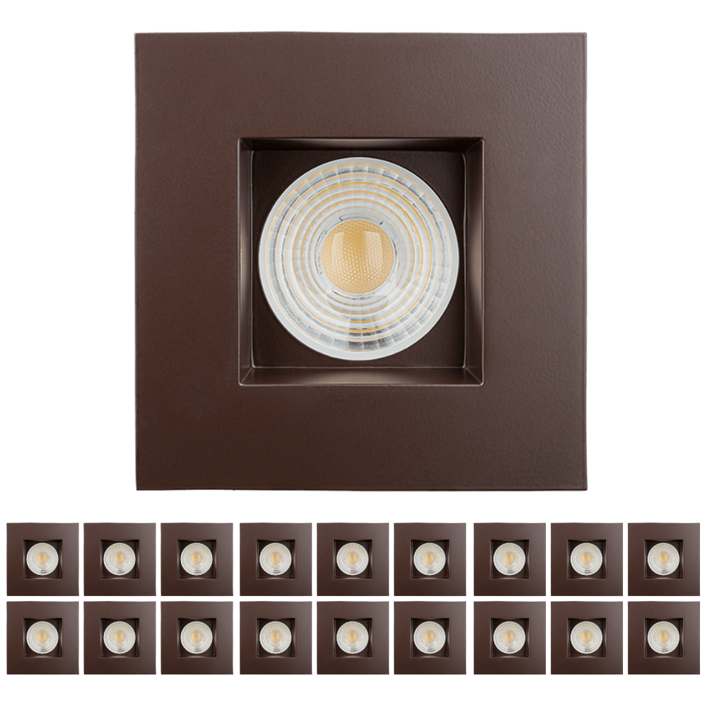 Perlglow 18 Pack 4 inch Square Bronze Smooth Downlight Luminaire, LED Recessed Light Fixtures 5CCT.