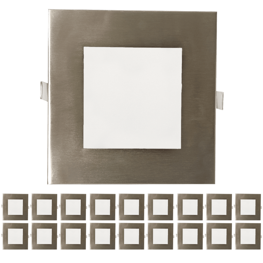 Perlglow 18 Pack 6 inch Slim Ultra-Thin Square Downlight Luminaire, Brushed Nickel Trim, LED Recessed Light Fixtures 5CCT.