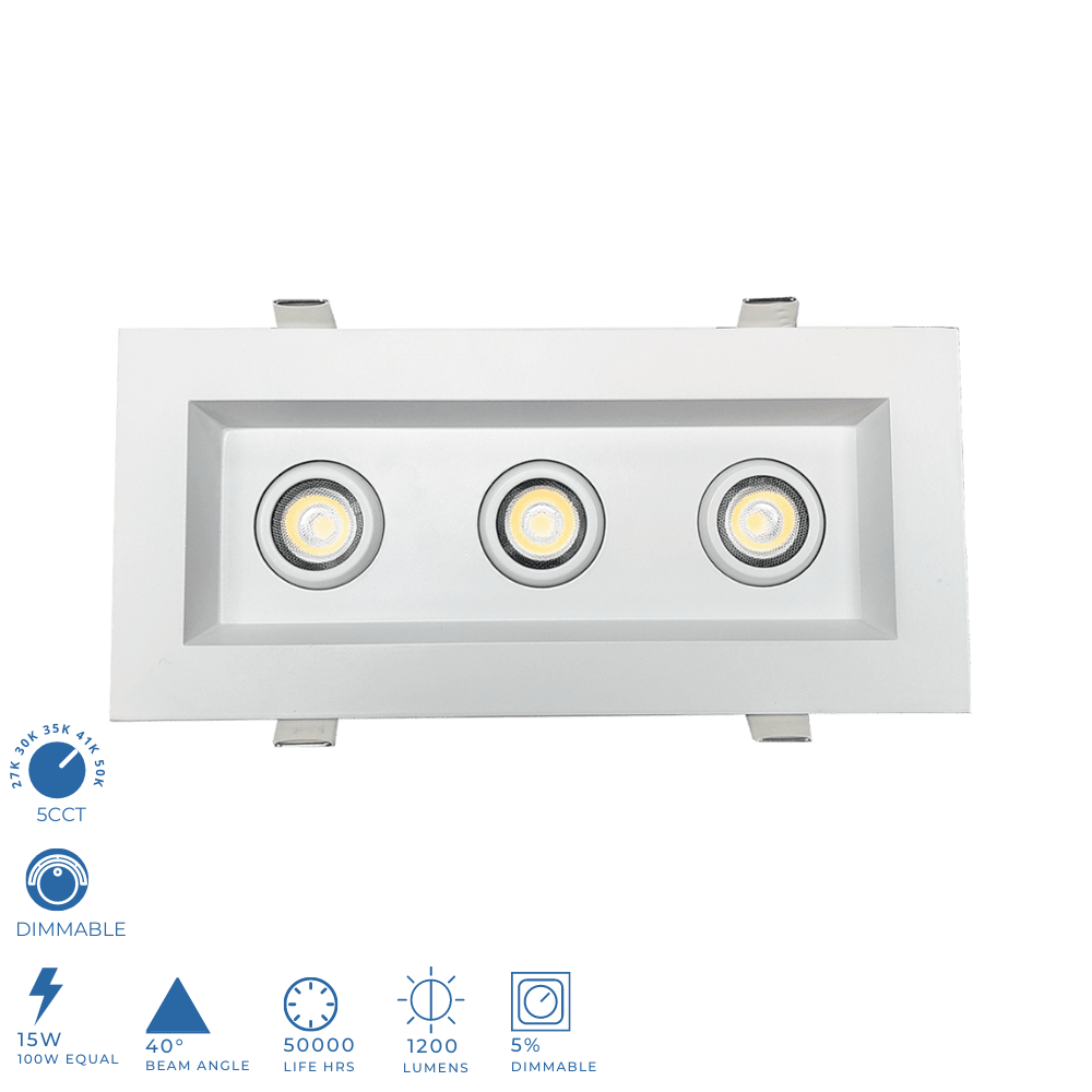 Perlglow 2-inch 3 Head Multiple Gimbal Downlight Luminaire, White Finish, LED Recessed Light Fixtures Dimmable 15W=100W, 1200 Lumens, CRI 90+, IC Rated, 5CCT