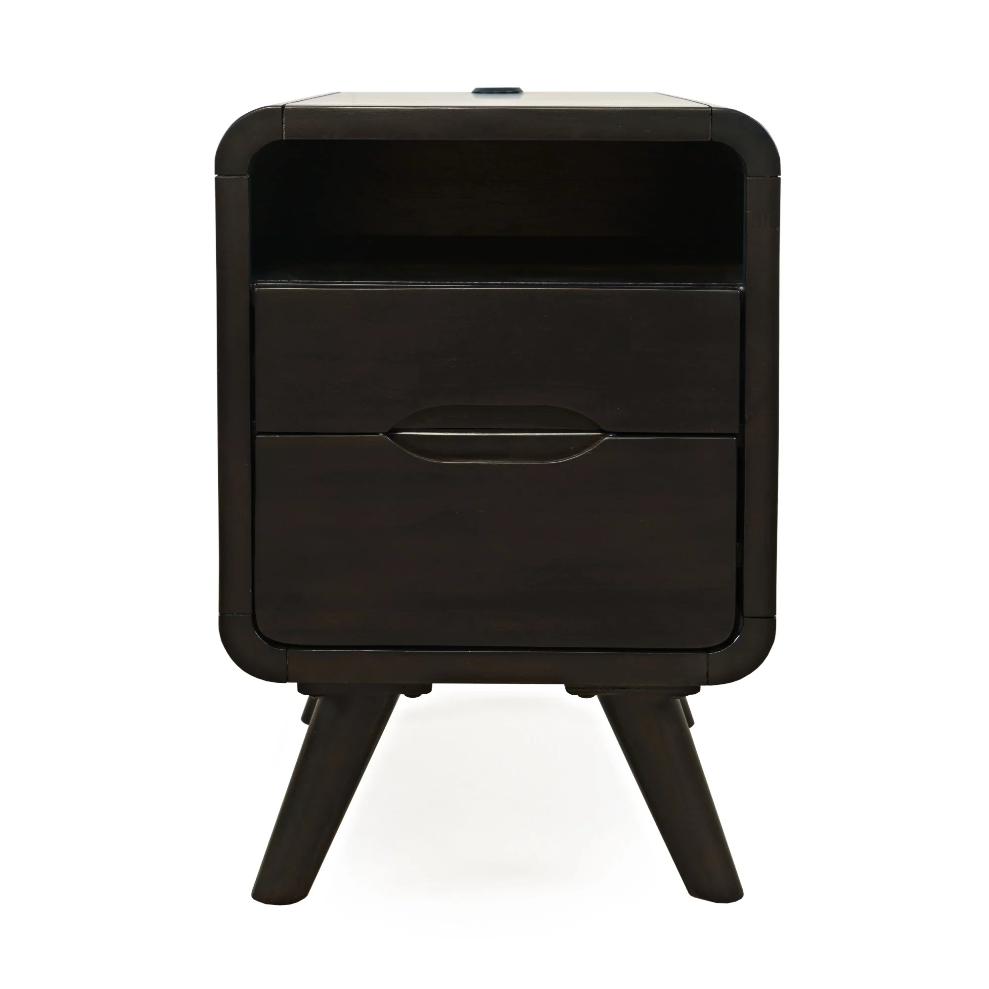 Jofran Marlowe Mid-Century Modern USB Charging Curved Chairside End Table with Storage Drawers