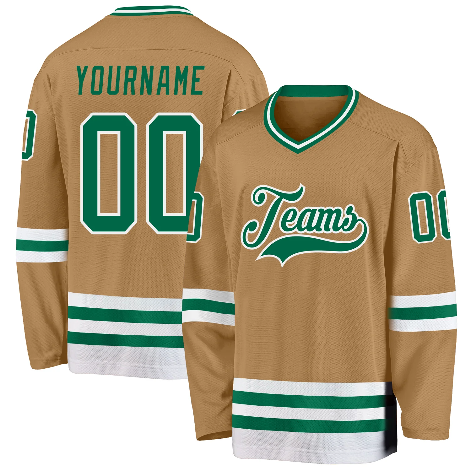 Custom Old Gold Kelly Green-White Hockey Jersey