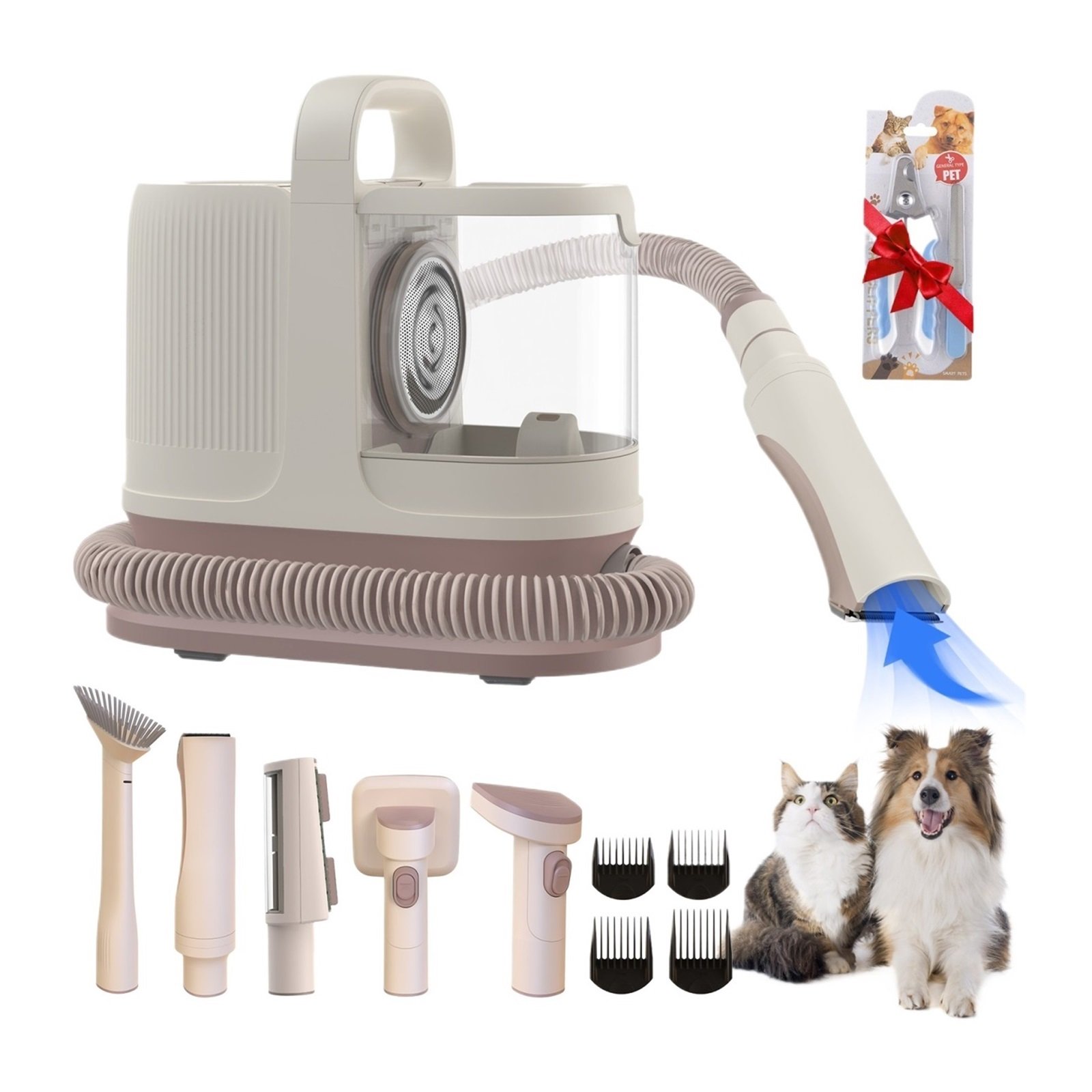Pet Grooming Kit 1.3L Vacuum Cleaner For 99% Pet Hair 60db Low Noise And Level 3 Suction With 7 Grooming Removal Tools