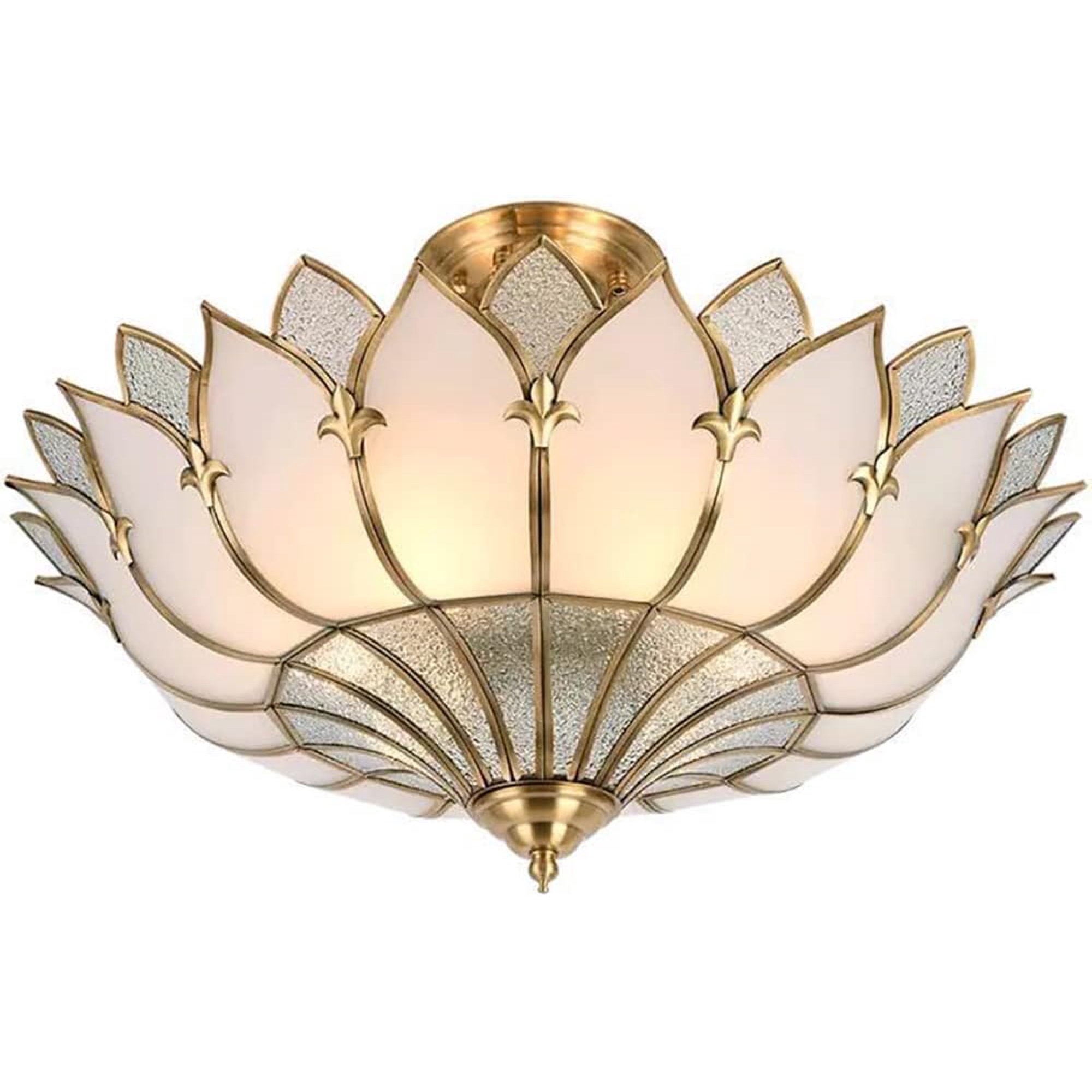 Petal Brass Semi-Flush Mount Ceiling Light, Glass Ceiling Light Fixture for Living Room Hall Bedroom, 4 Lights