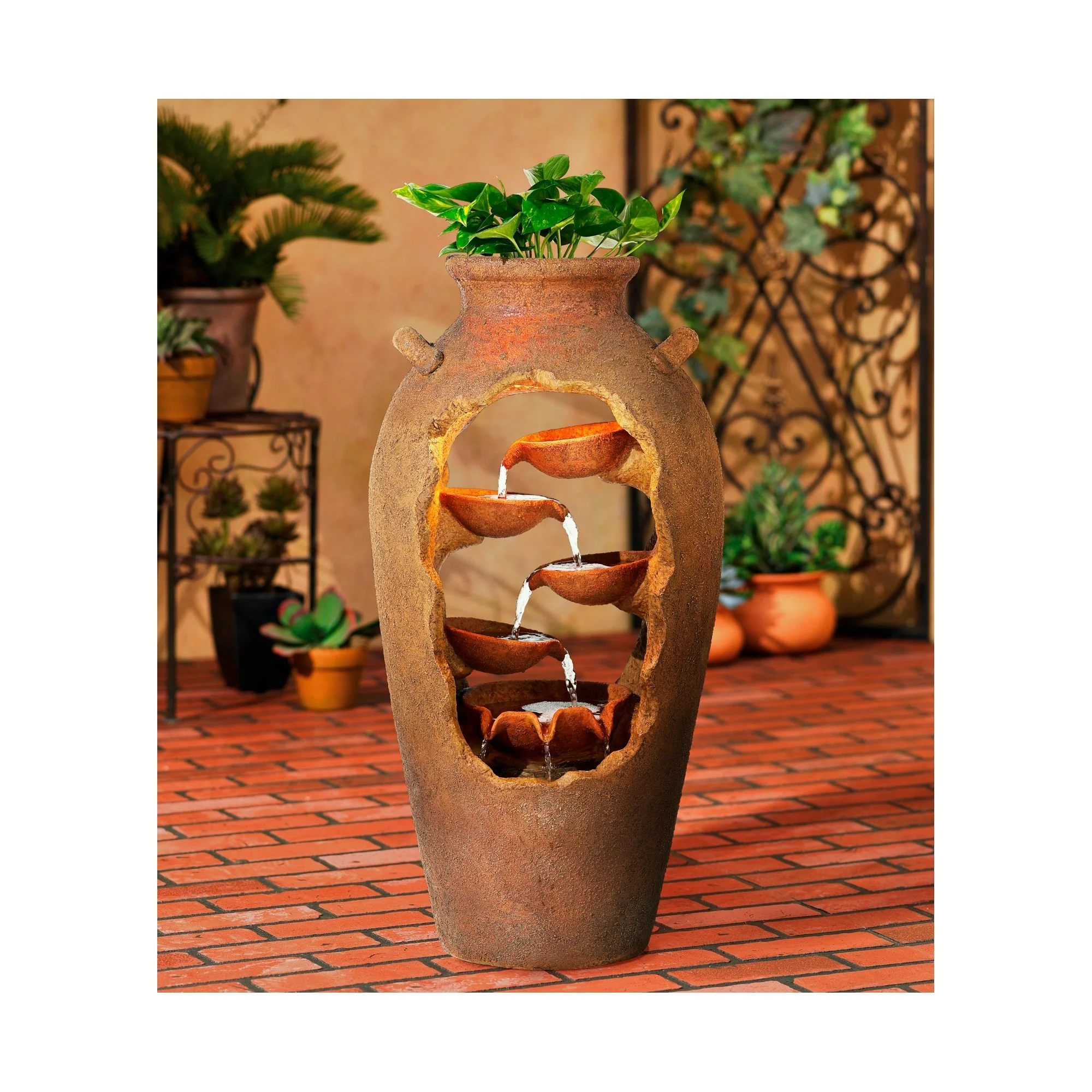 John Timberland Cascading Rustic Three Jugs Outdoor Floor Water Fountain 33" for Yard Garden Patio Home Deck Porch House Exterior Balcony Roof