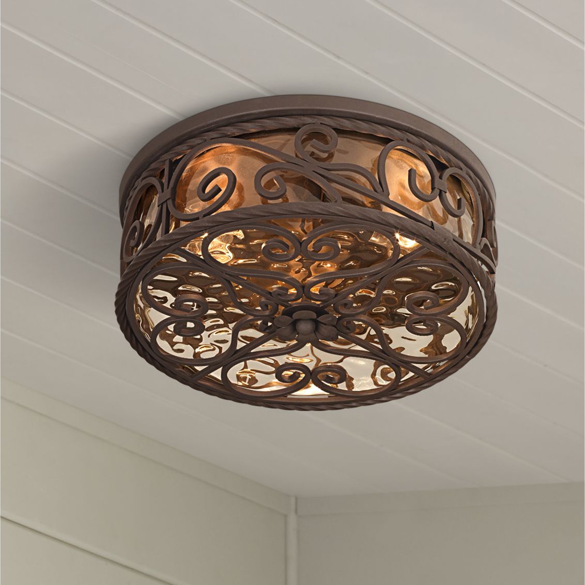 John Timberland Casa Seville Rustic Farmhouse Flush Mount Outdoor Ceiling Light Fixture Dark Walnut 5" Champagne Water Glass for Post Exterior Barn