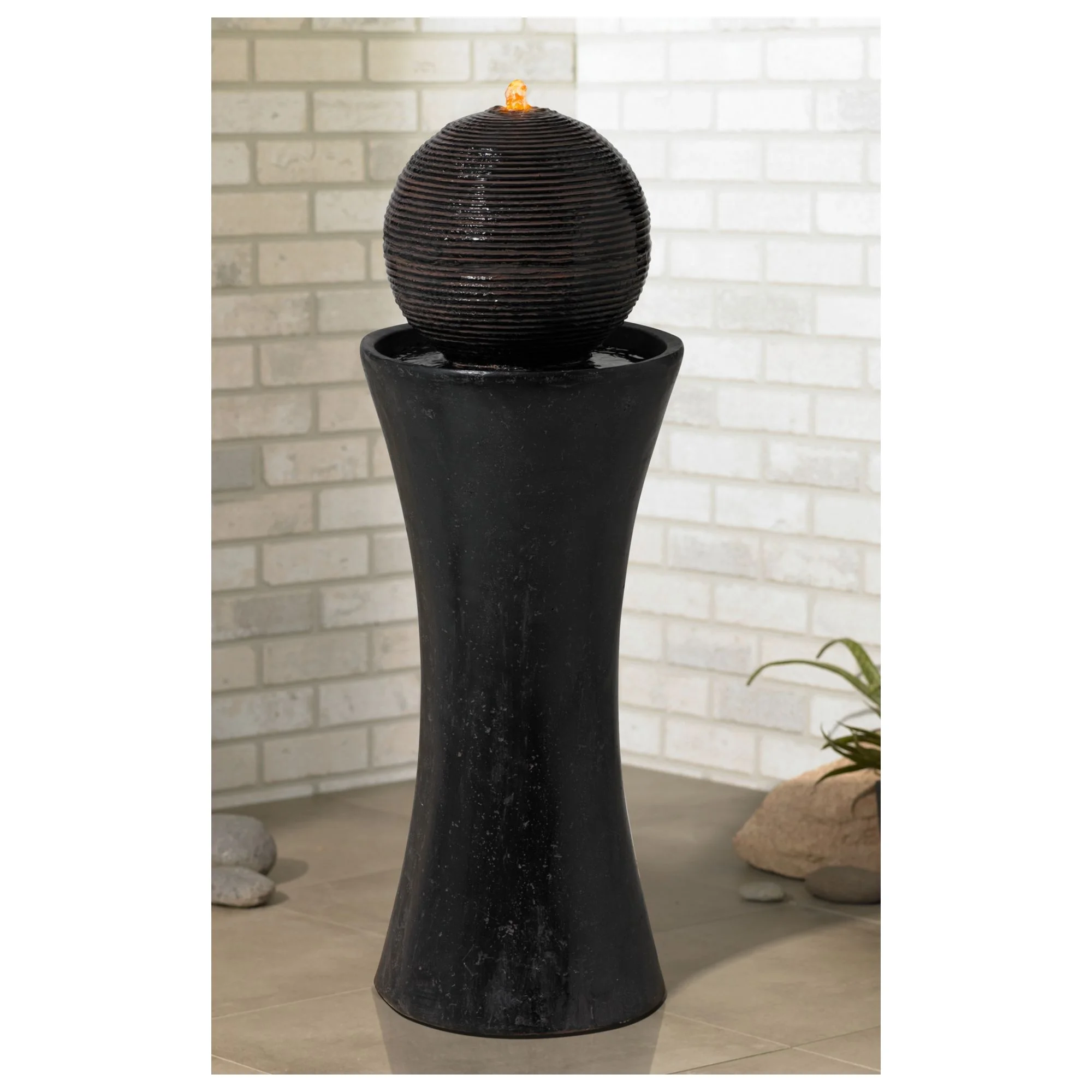 John Timberland Dark Sphere Modern Zen Bubbler Pillar Outdoor Floor Water Fountain with LED Light 30" for Yard Garden Patio Home Deck Porch Exterior