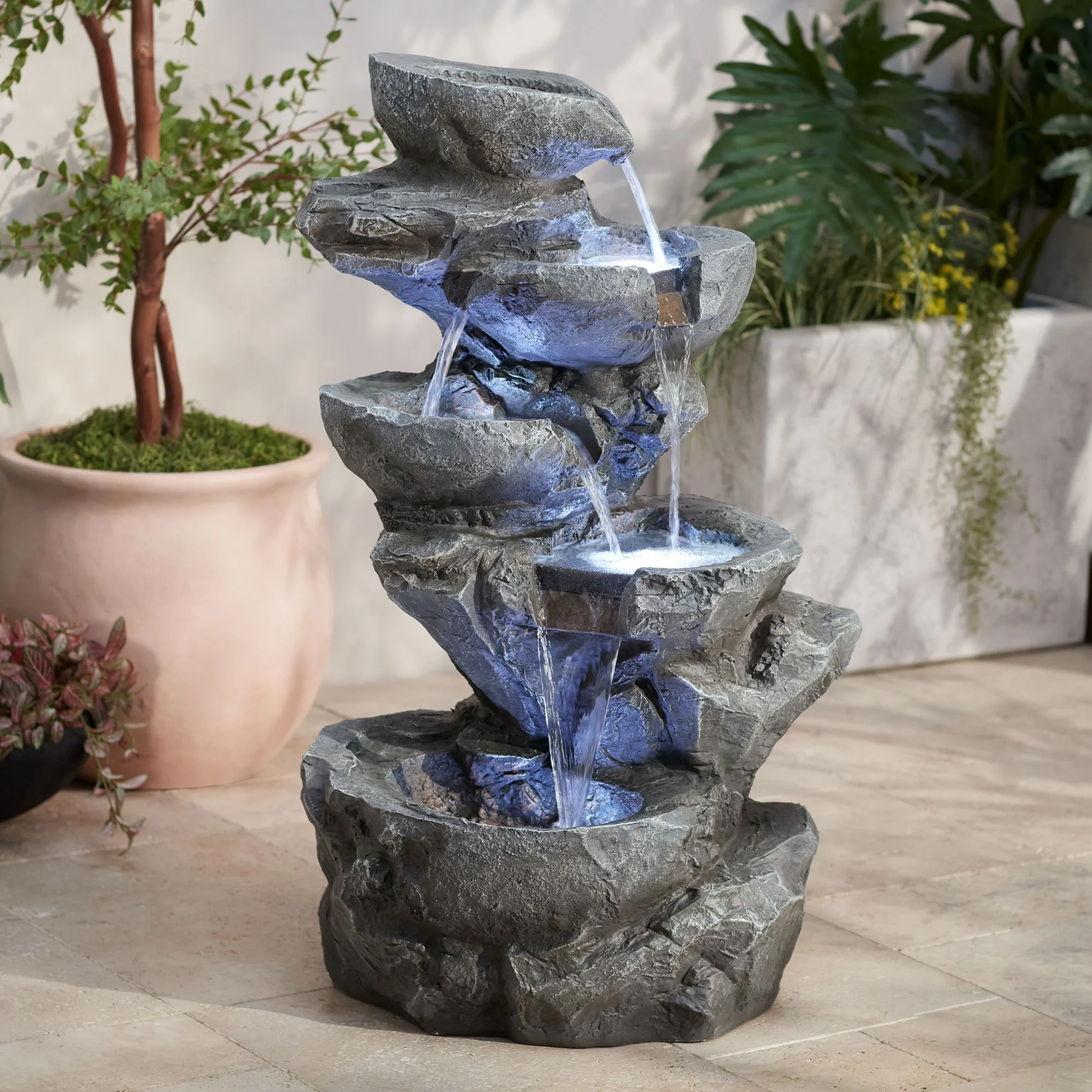 John Timberland Five Bowl 40 1/2" High Gray Resin Fountain with LED Light
