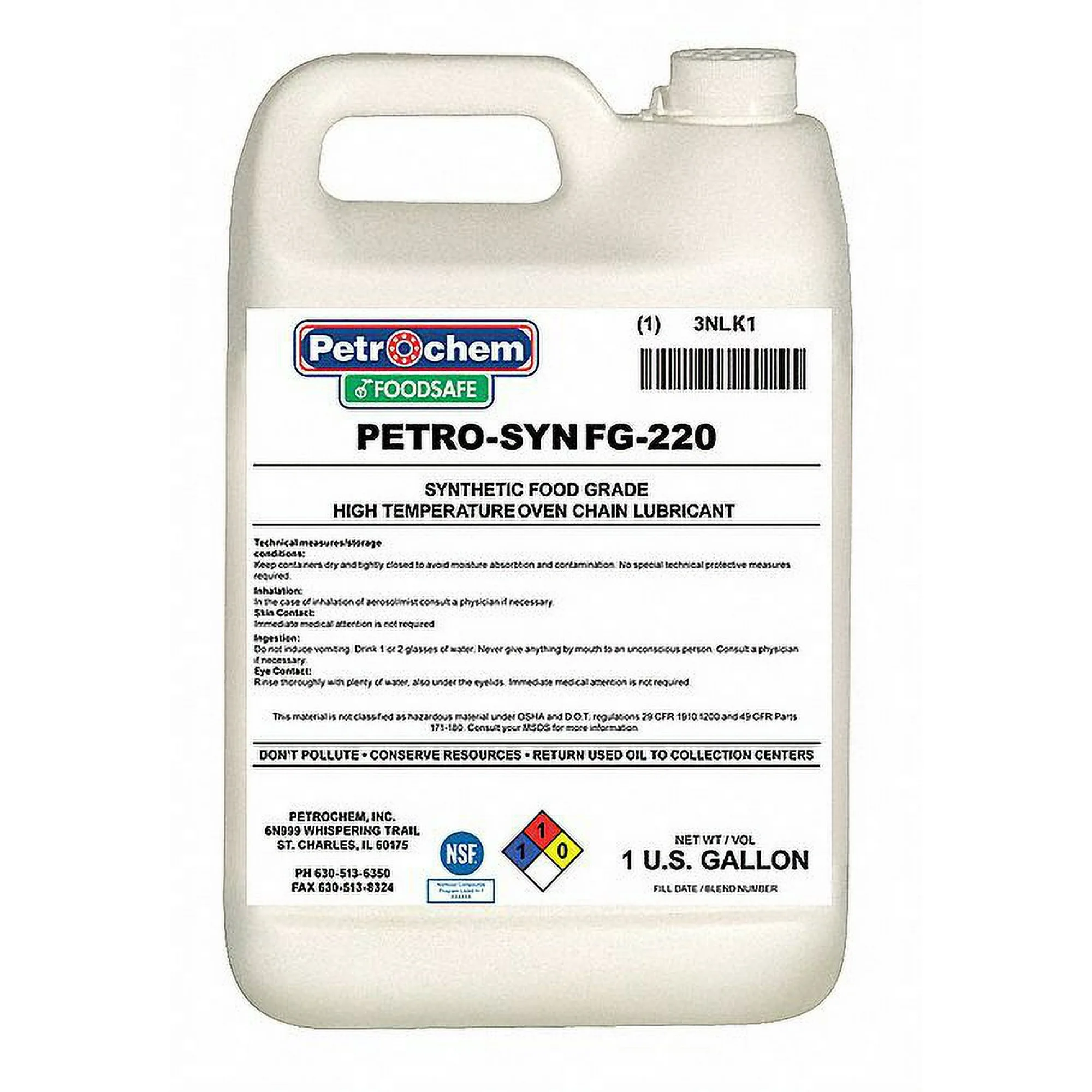 Petrochem 1 Gal.,Jug,Oven Chain Lubricant FOODSAFE PETRO-SYN FG-220