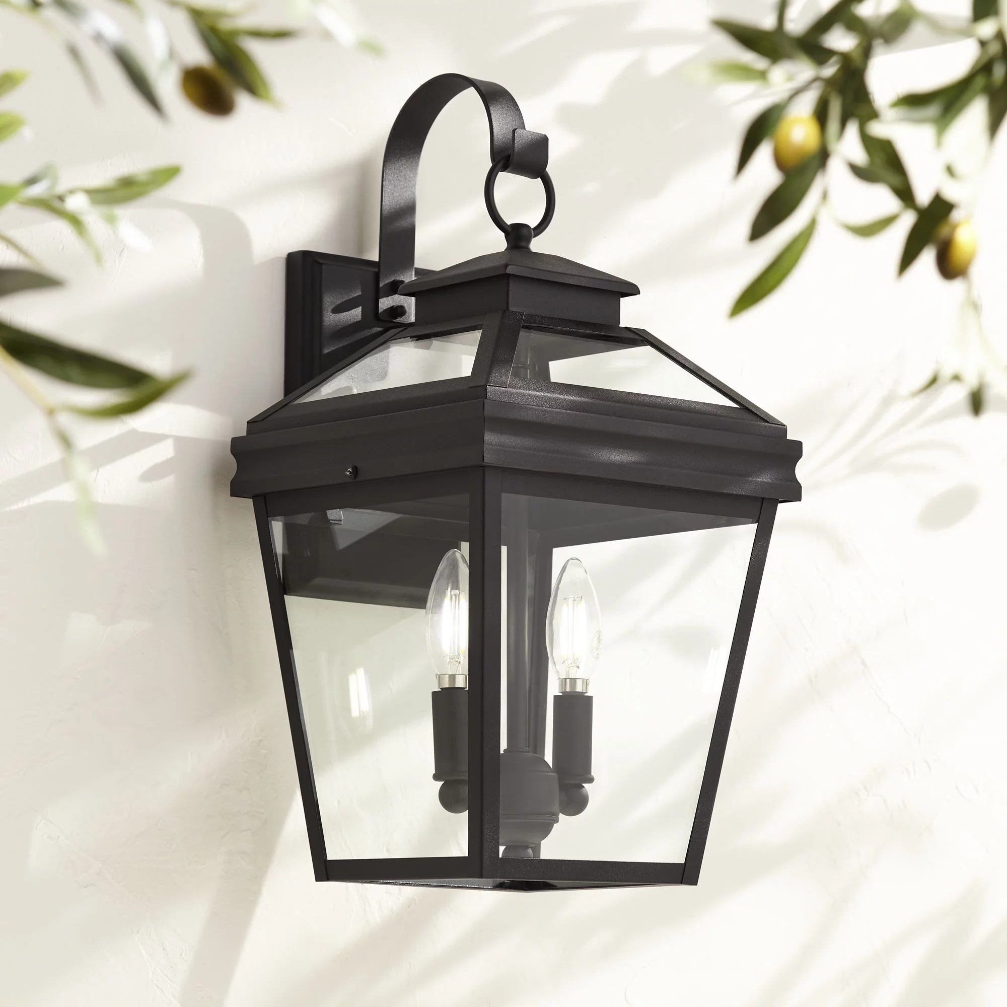 John Timberland Titan Modern Outdoor Wall Light Fixtures Set of 2 Mystic Black Rectangular Frame 20" Clear Glass for Post Exterior Barn