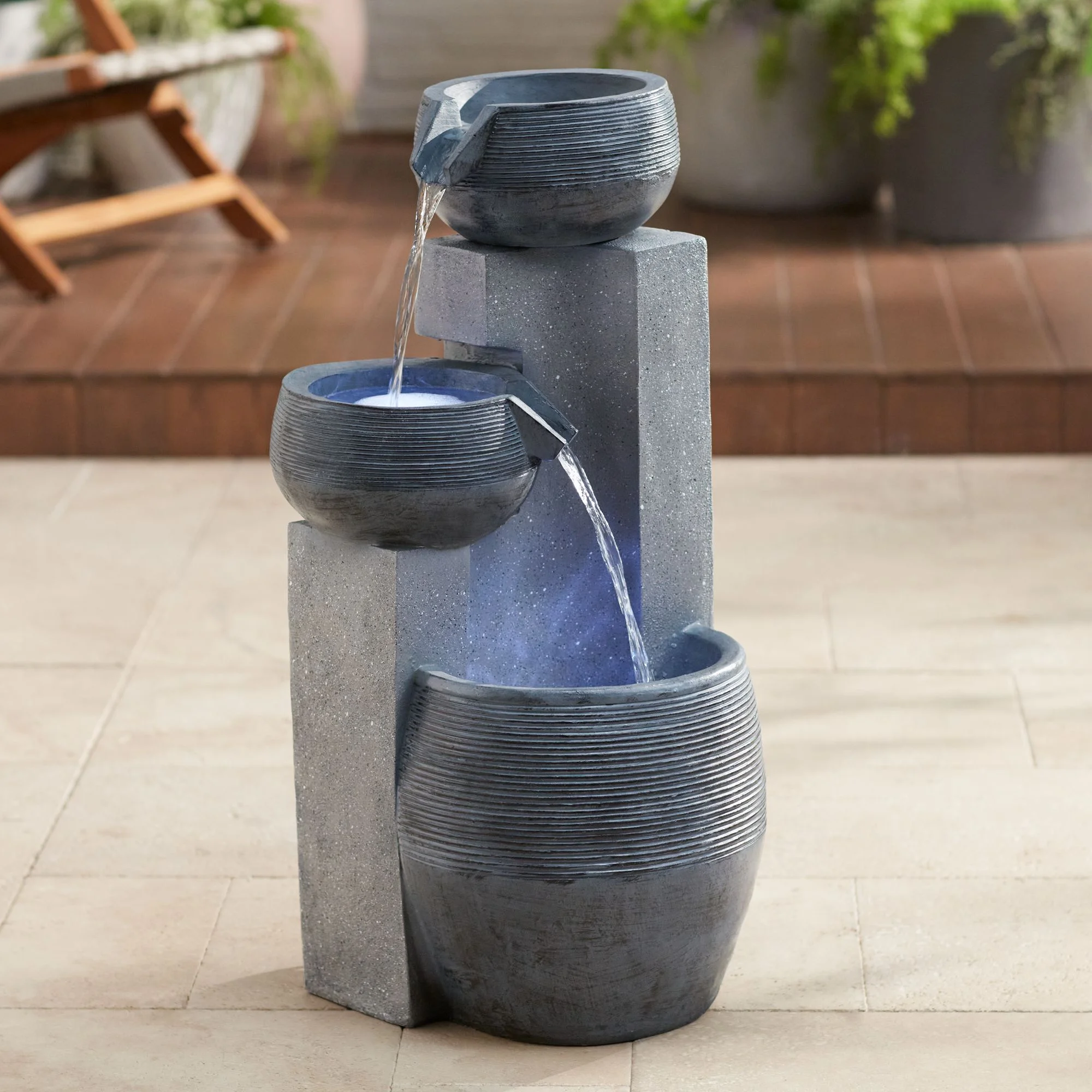 John Timberland Three Bowl 31 1/2" High Gray Faux Stone Fountain with LED Light