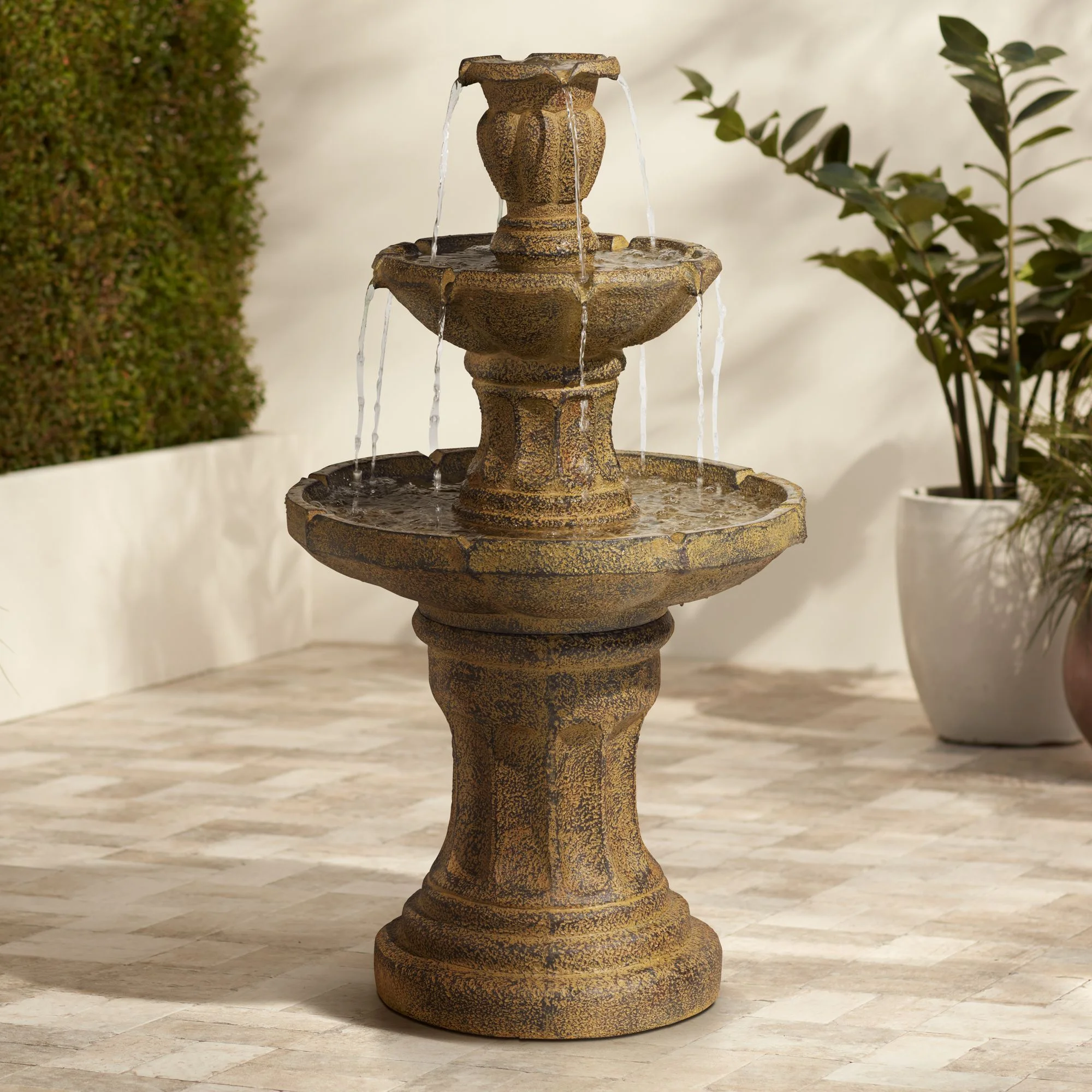 John Timberland Tuscan Garden Rustic 3 Tier Basin Outdoor Floor Water Fountain 41 1/2" for Yard Backyard Garden Patio Home Deck Porch House Exterior