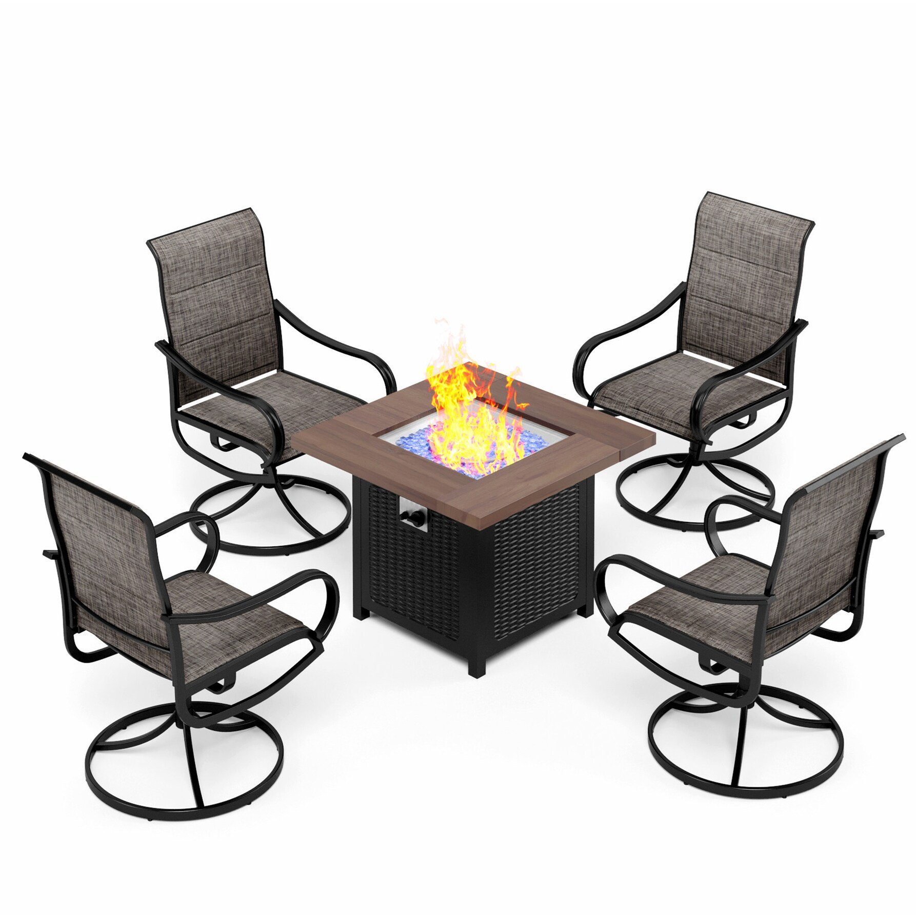 Phi Villa 5-Piece Patio Dining Set, 50000 BTU Auto-Ignition Propane Gas Fire Pit Table Padded