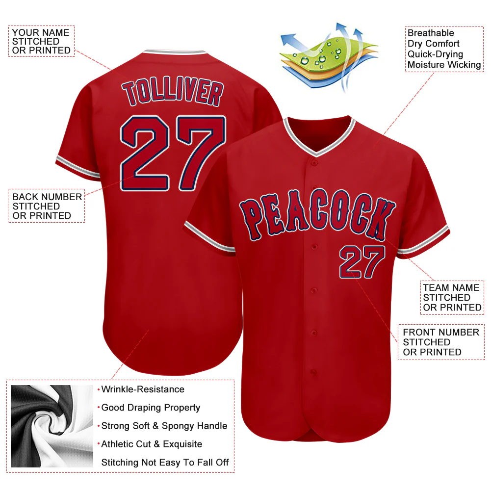 Custom Red Red-Navy Authentic Baseball Jersey