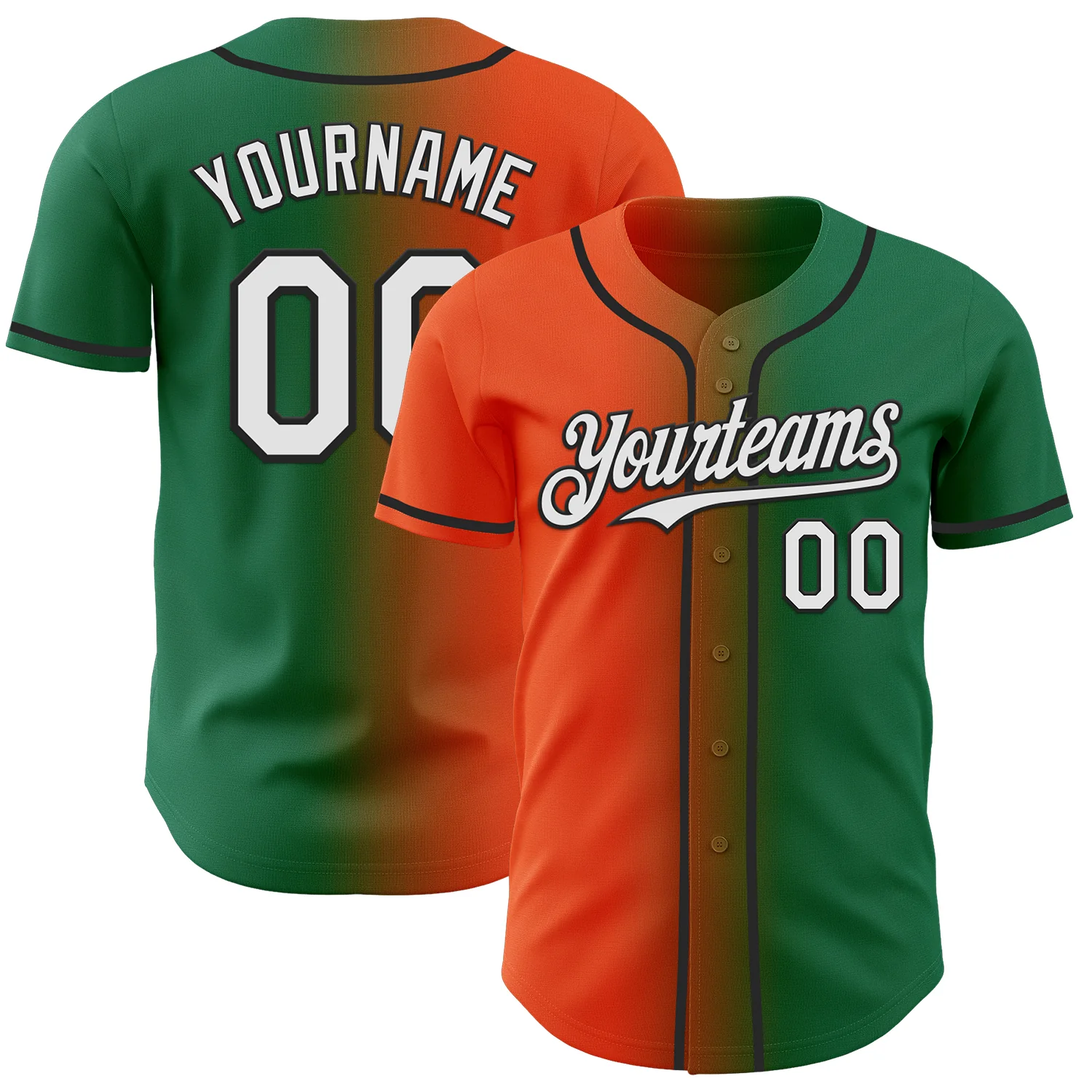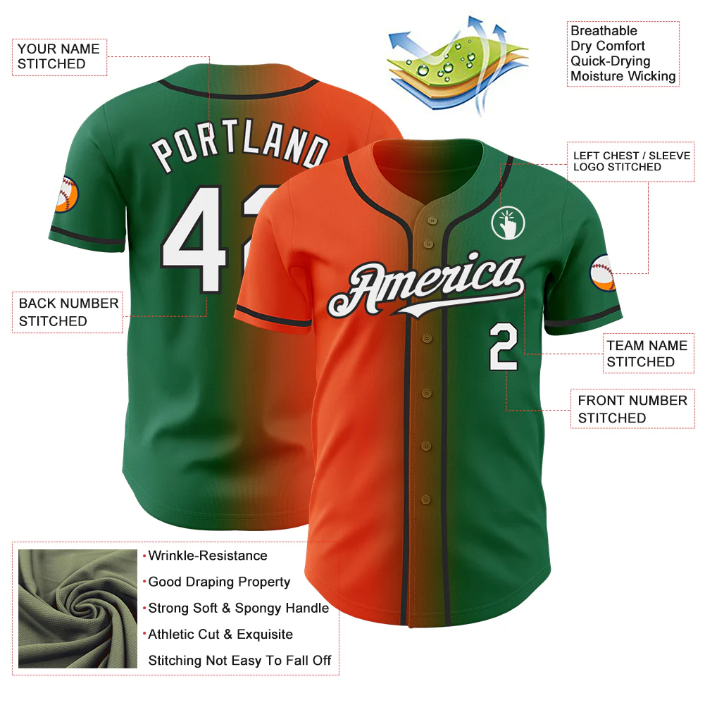 Custom Kelly Green White Orange-Black Authentic Gradient Fashion Baseball Jersey