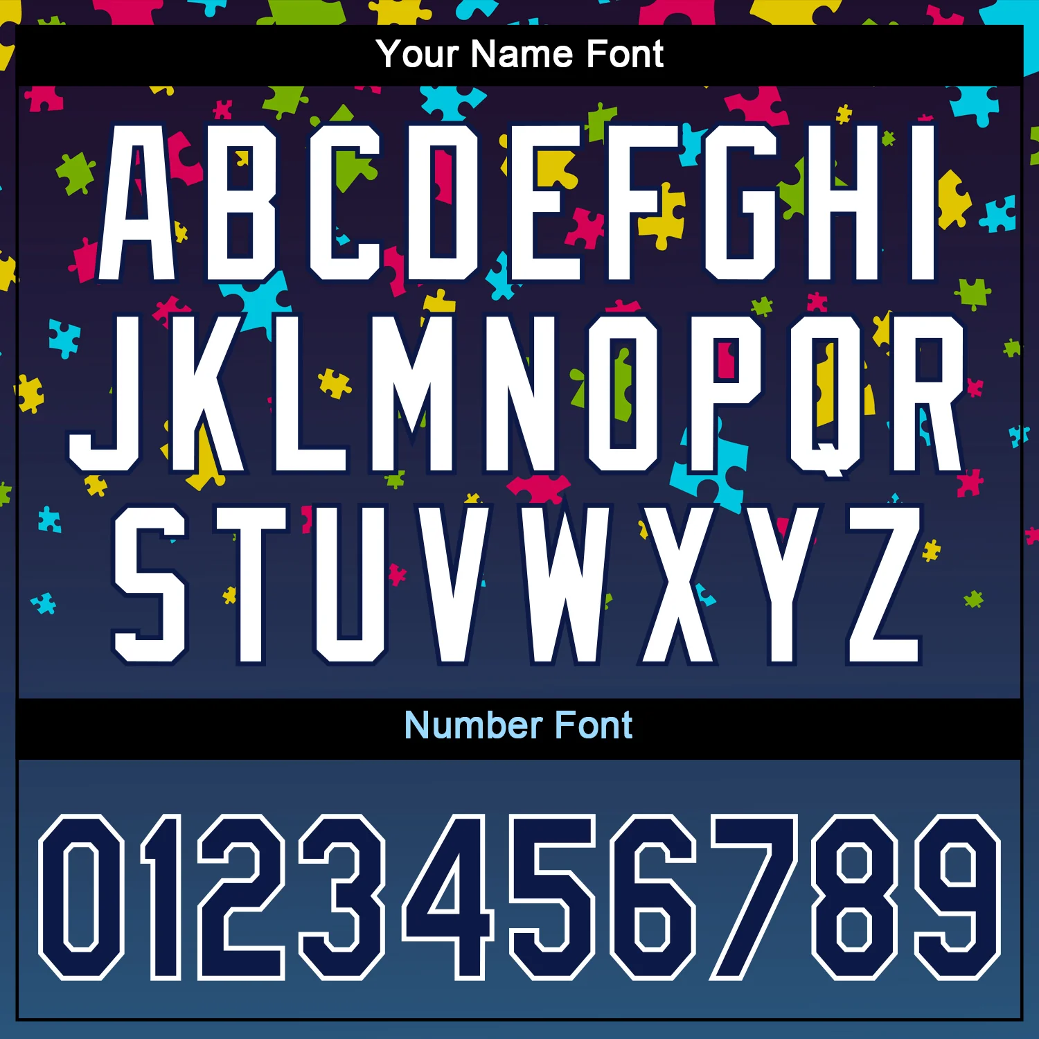 Custom Autism Awareness Puzzle Pieces Navy-White 3D Authentic Baseball Jersey