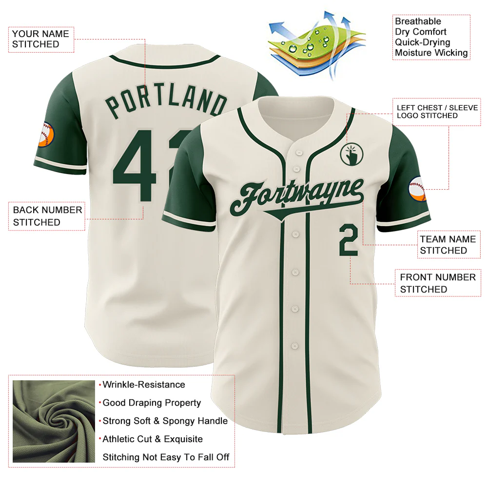 Custom Cream Green Authentic Two Tone Baseball Jersey