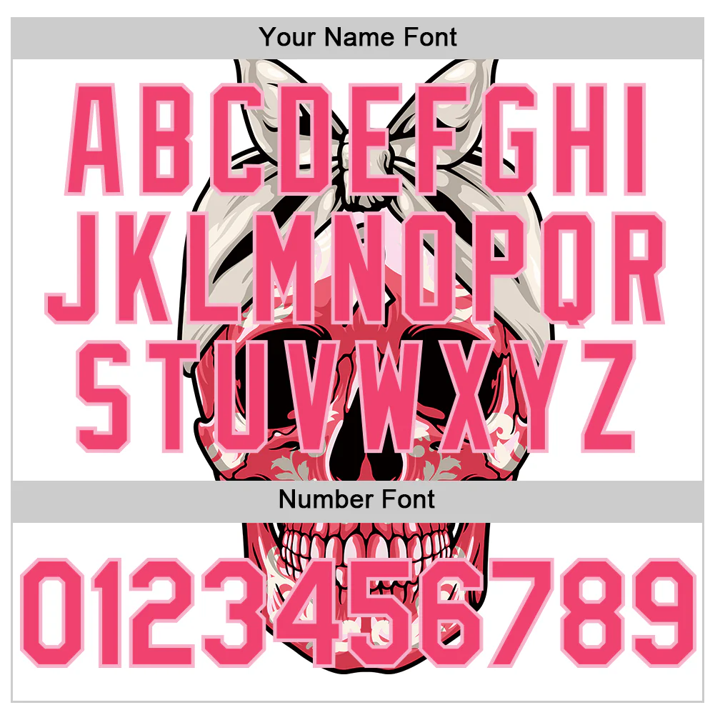 Custom White Neon Pink-Light Pink 3D Pink Ribbon Skull Authentic Baseball Jersey