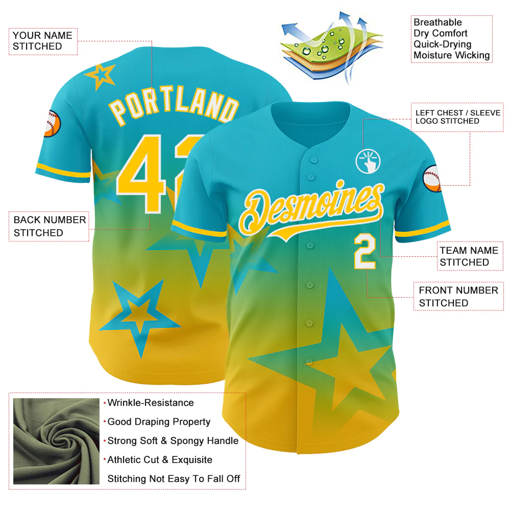 Custom Lakes Blue Yellow-White 3D Pattern Design Gradient Style Twinkle Star Authentic Baseball Jersey