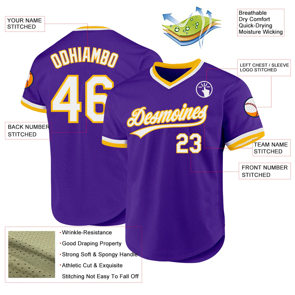 Custom Purple White-Gold Authentic Throwback Baseball Jersey