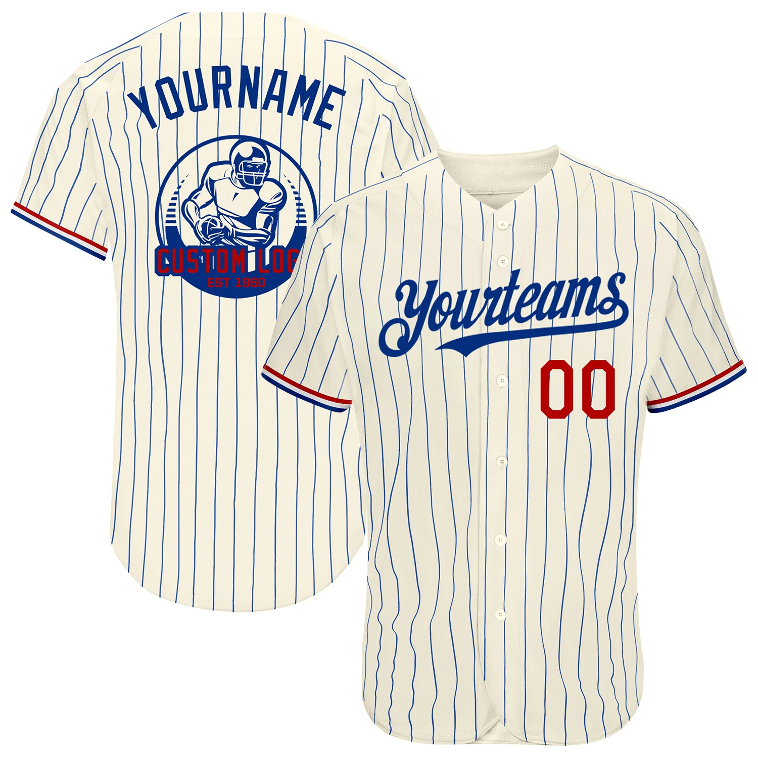Custom Cream Royal Pinstripe Red-White Authentic Baseball Jersey