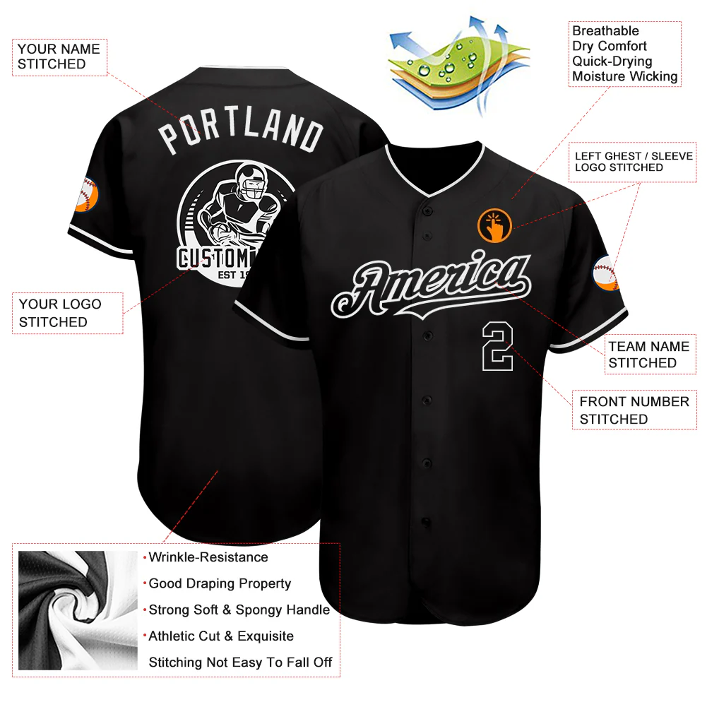 Custom Black White Authentic Baseball Jersey