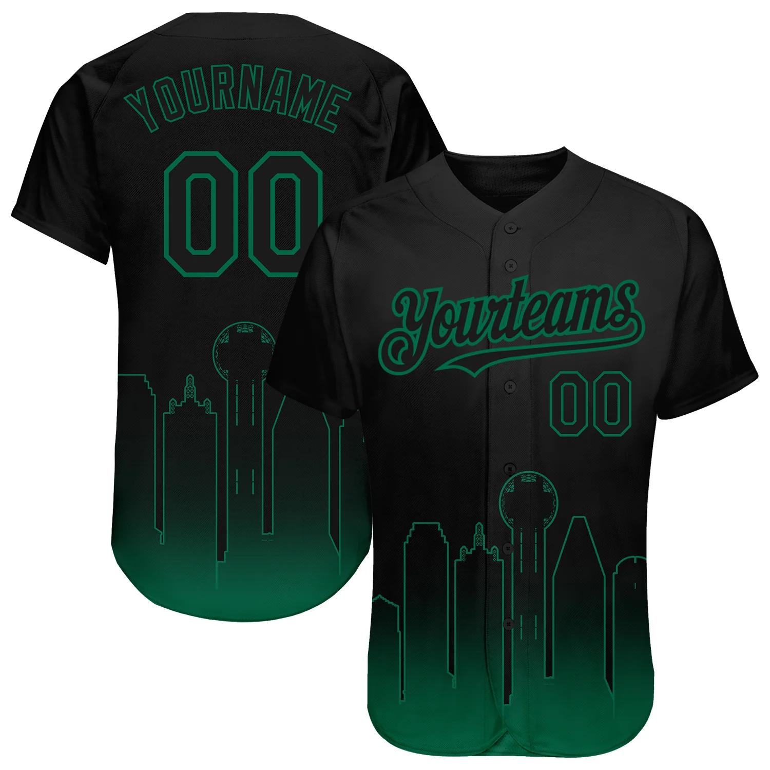 Custom Black Kelly Green 3D Dallas City Edition Fade Fashion Authentic Baseball Jersey