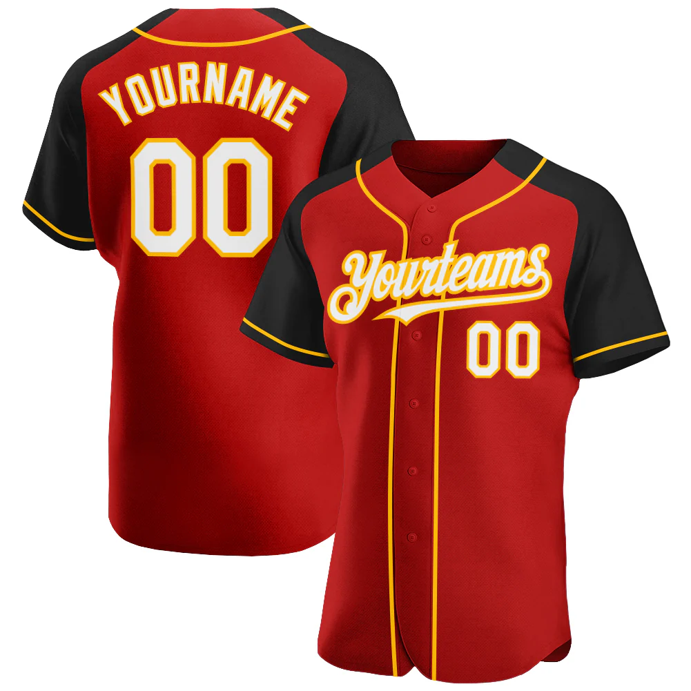Custom Red White Black-Gold Authentic Raglan Sleeves Baseball Jersey