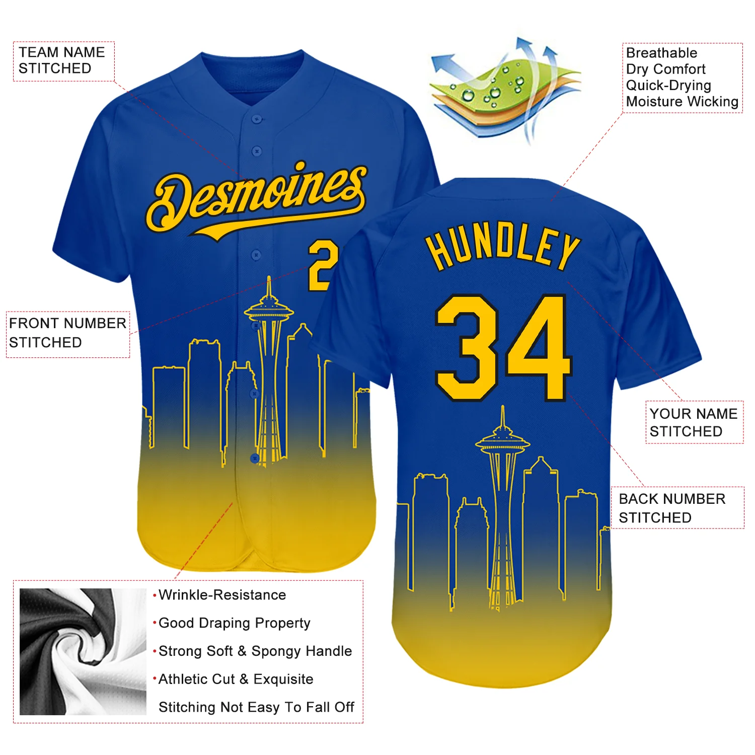 Custom Royal Yellow-Black 3D Seattle City Edition Fade Fashion Authentic Baseball Jersey