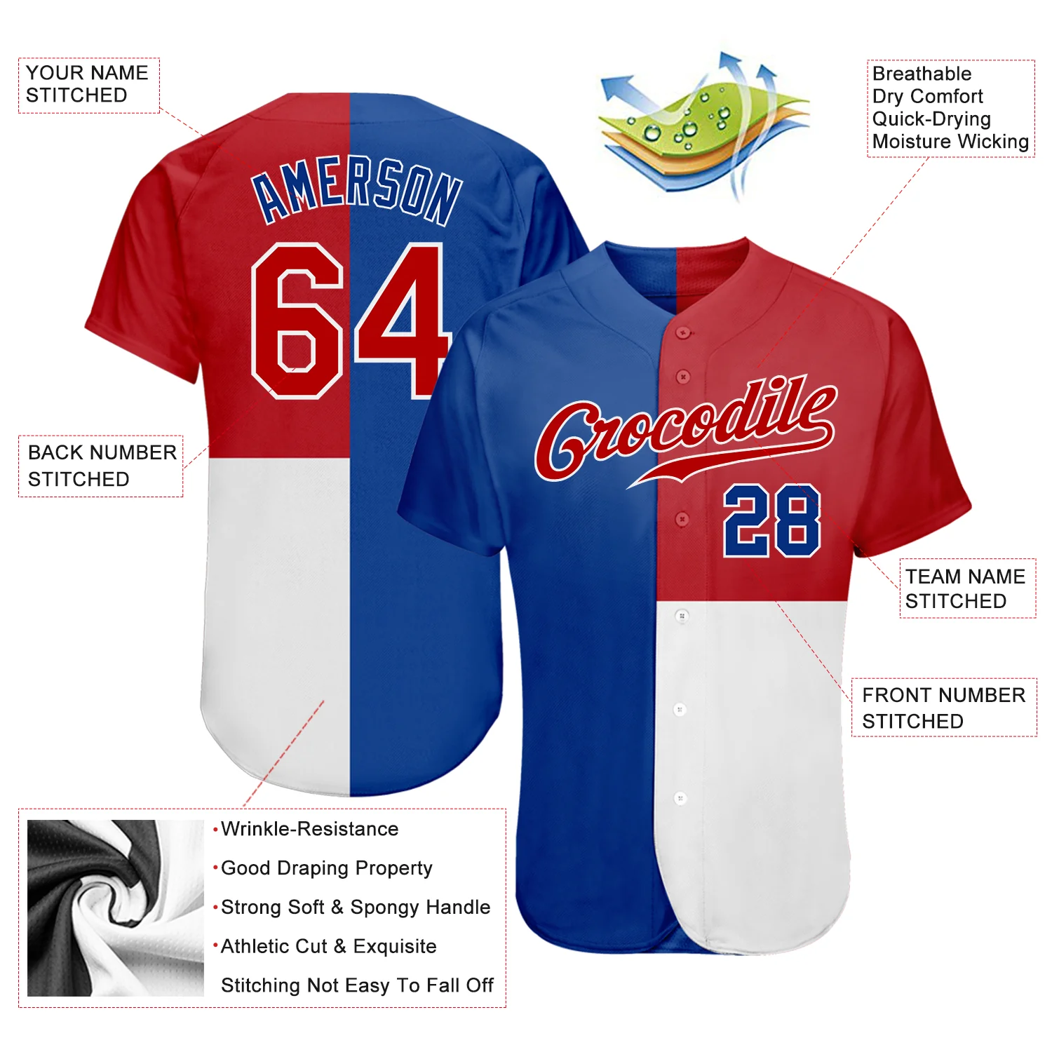 Custom Royal Red-White 3D Pattern Design Multicolor Authentic Baseball Jersey