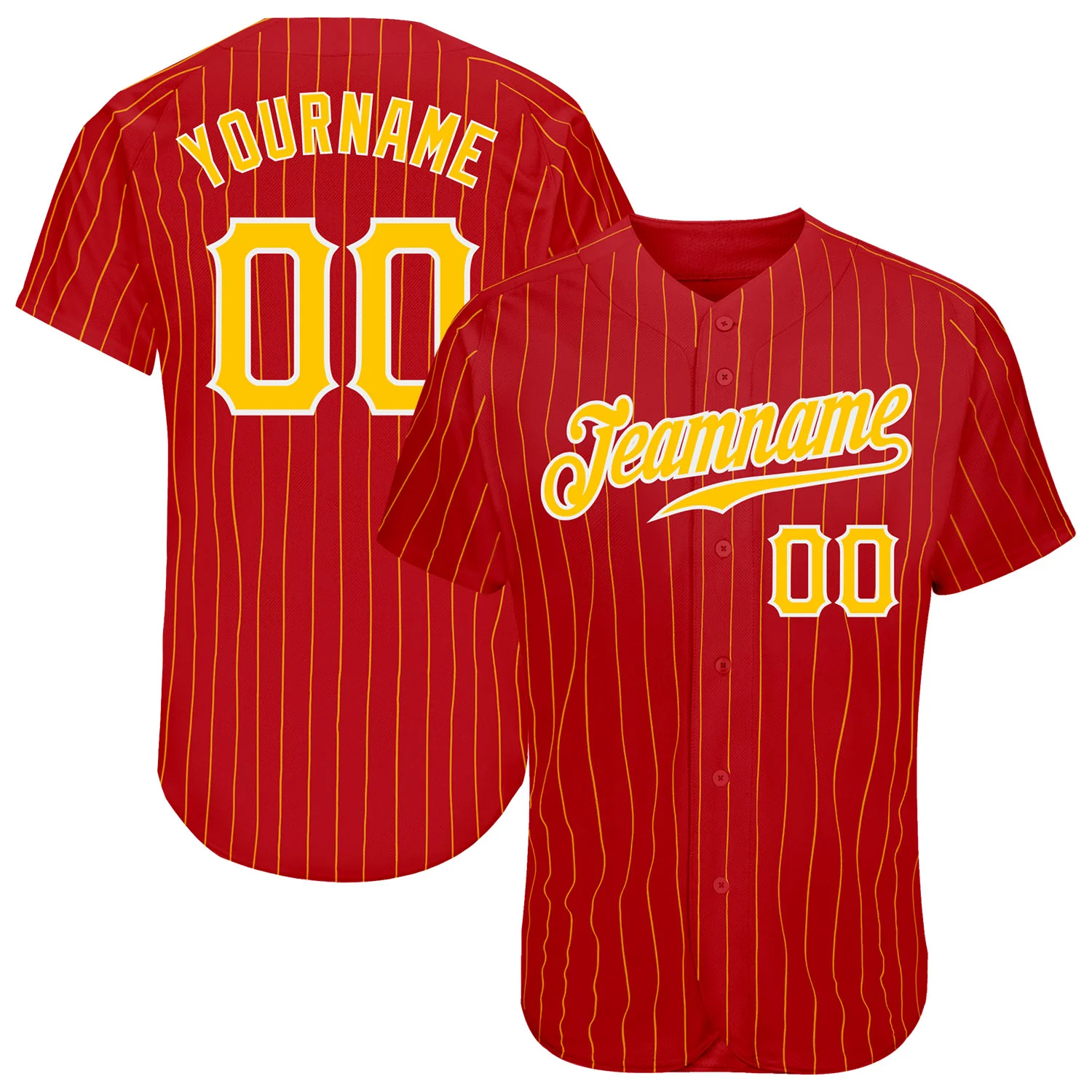 Custom Red Gold Pinstripe Gold-White Authentic Baseball Jersey