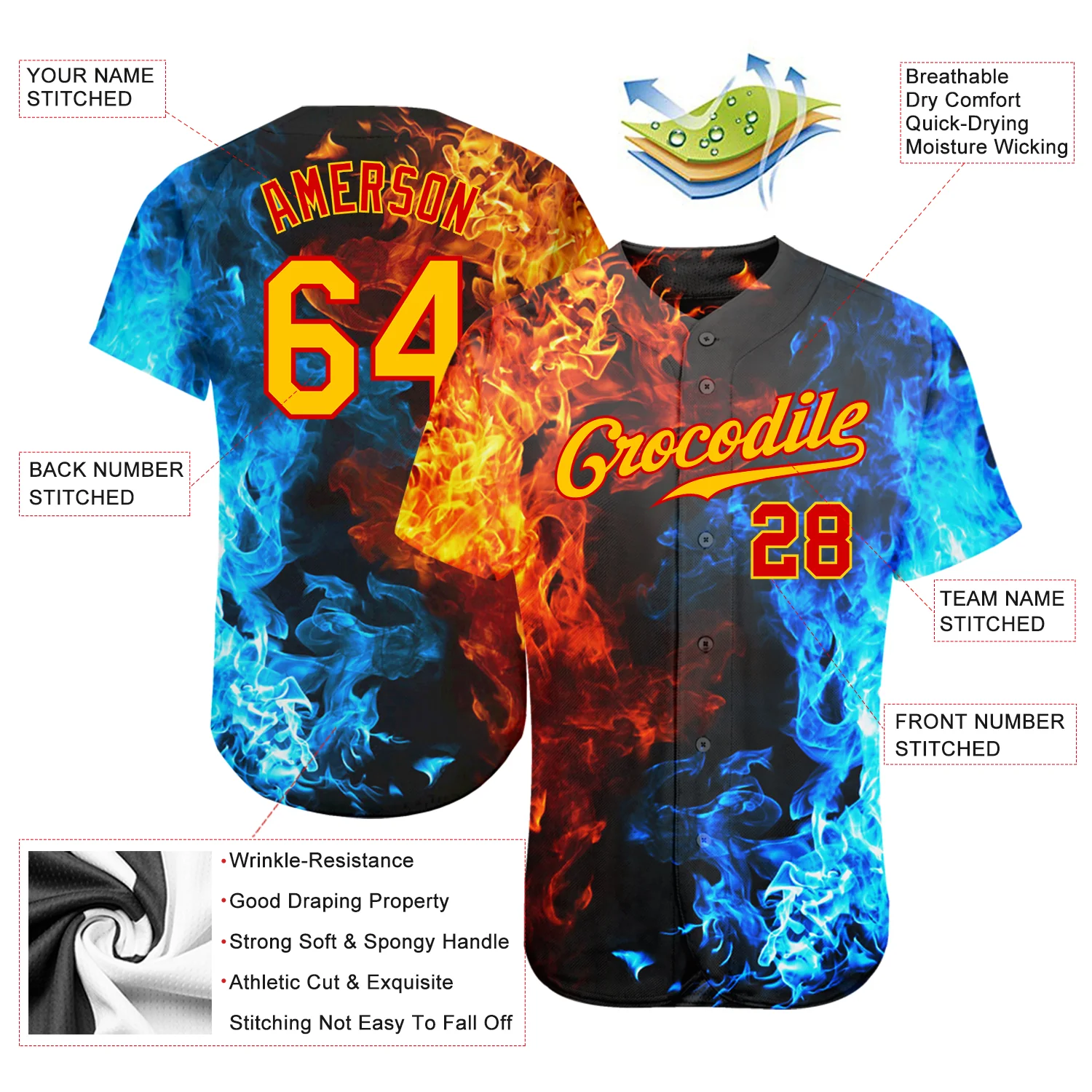 Custom Red Gold 3D Pattern Design Flame Authentic Baseball Jersey