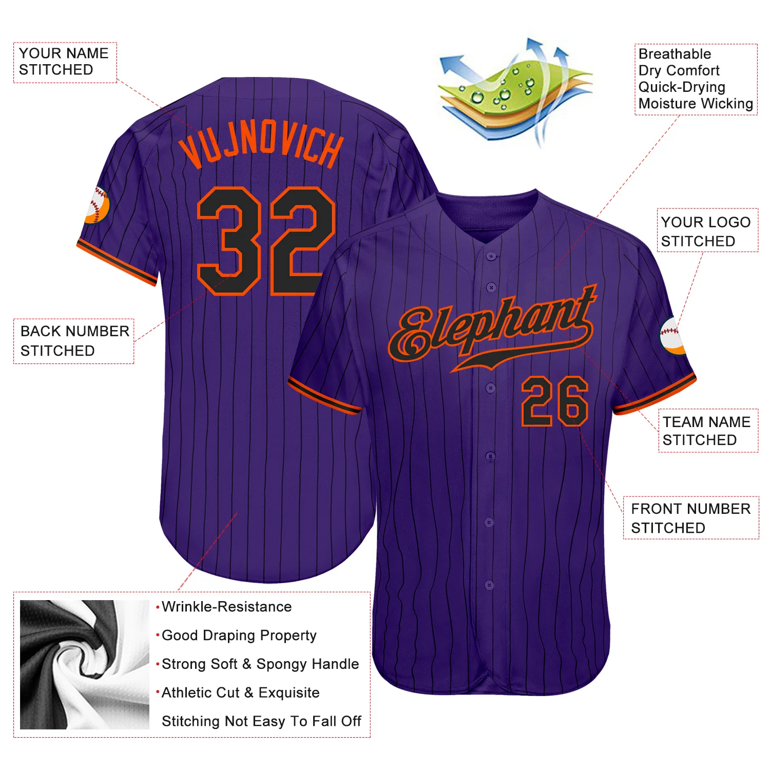 Custom Purple Black Pinstripe Black-Orange Authentic Baseball Jersey