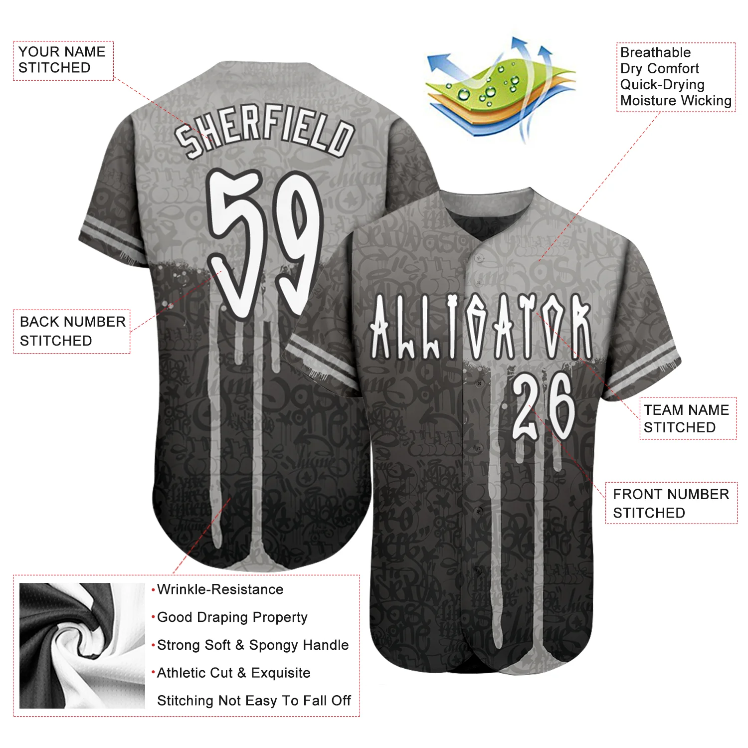 Custom Gray Black-White Authentic Drift Fashion Baseball Jersey