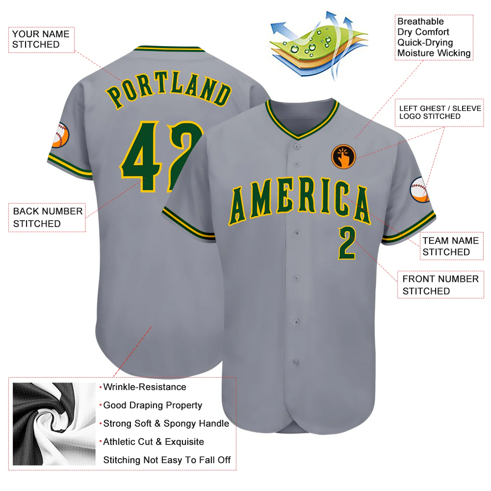 Custom Gray Green-Gold Authentic Baseball Jersey