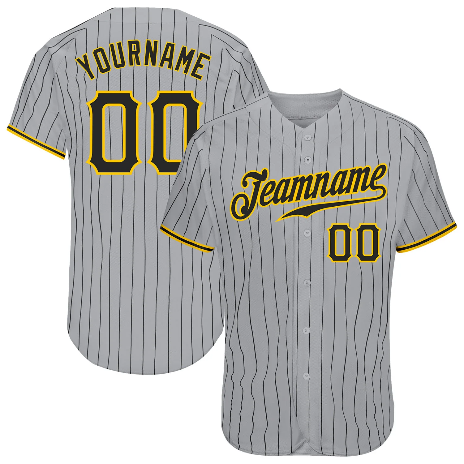 Custom Gray Black Pinstripe Black-Gold Authentic Baseball Jersey