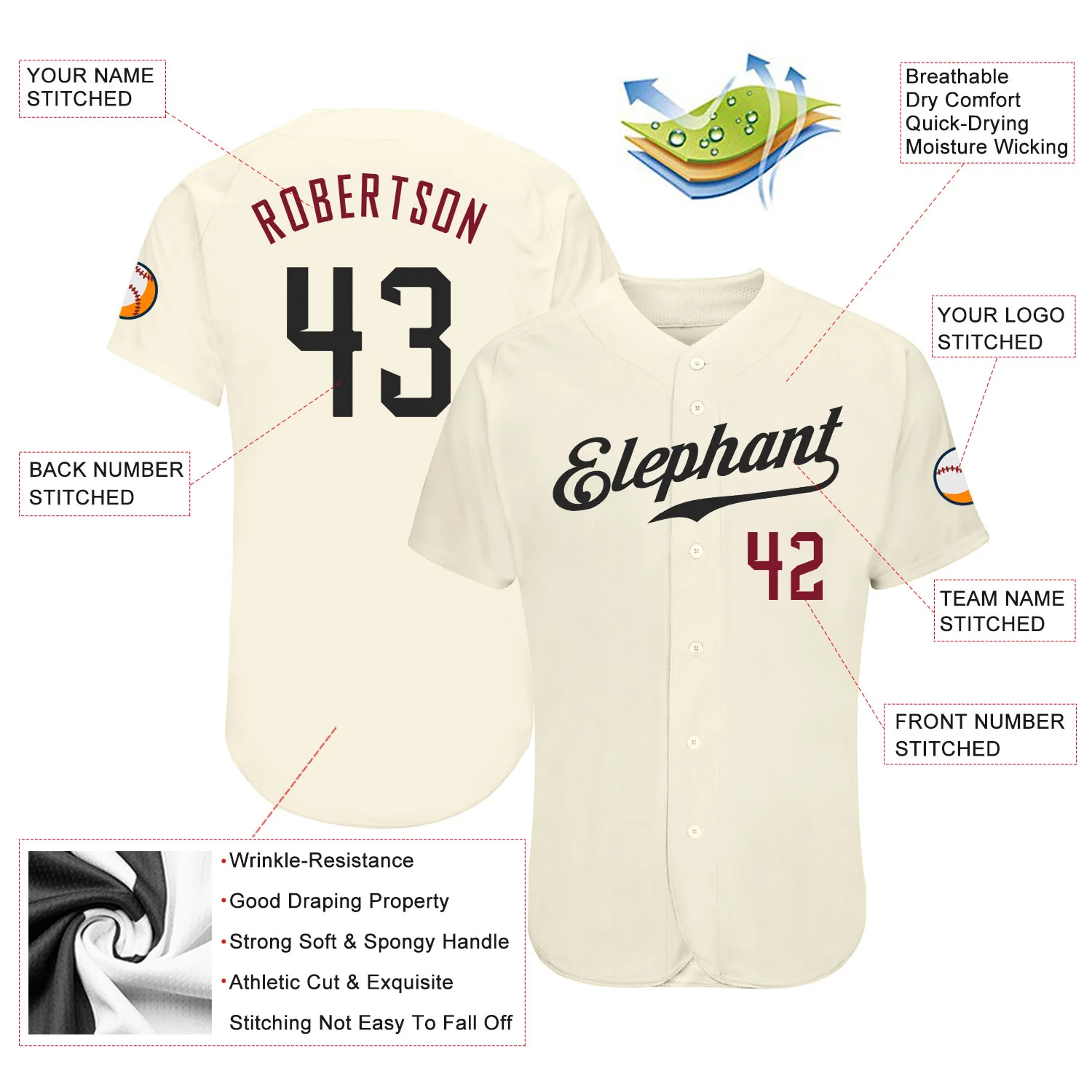 Custom Cream Black-Crimson Authentic Baseball Jersey
