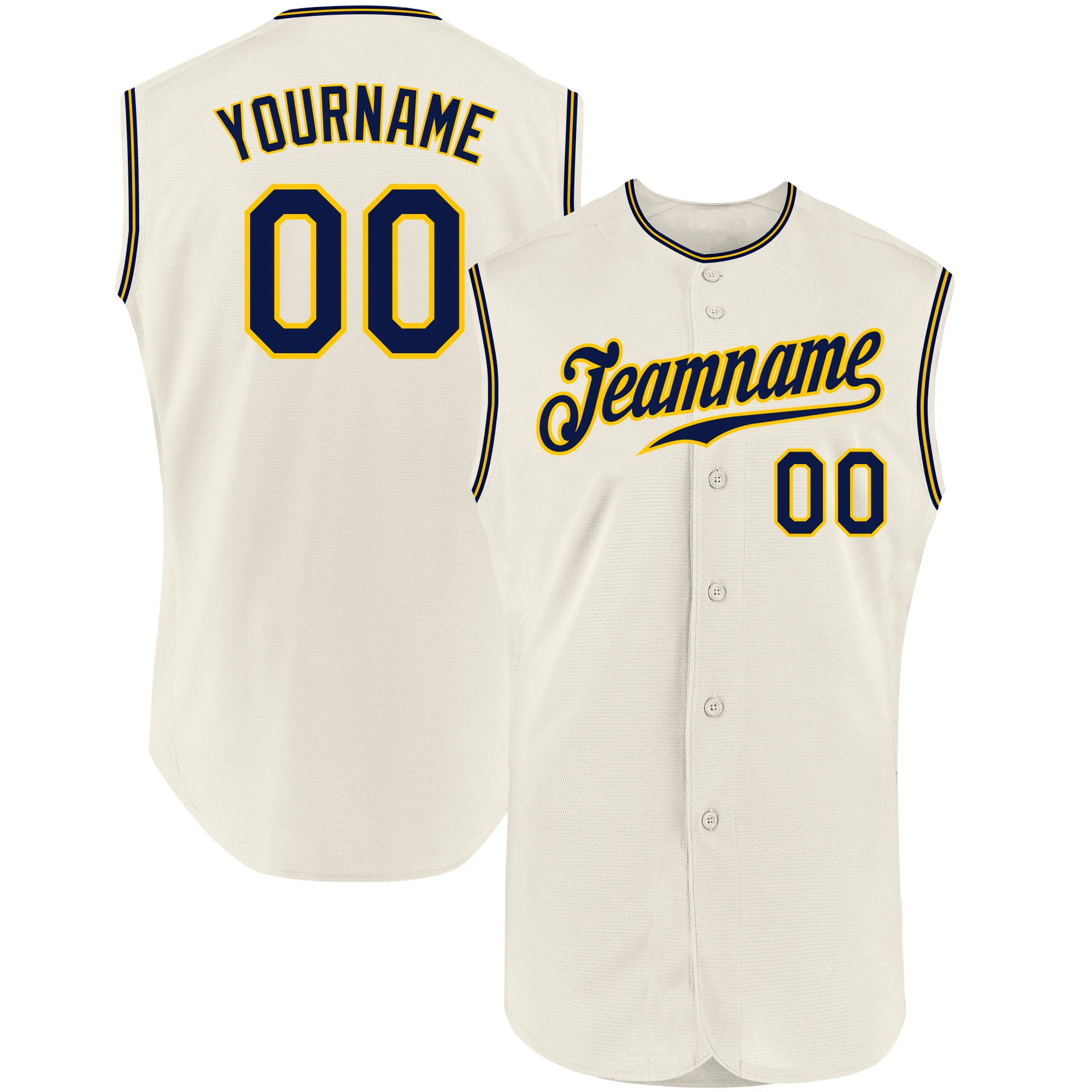Custom Cream Navy-Gold Authentic Sleeveless Baseball Jersey