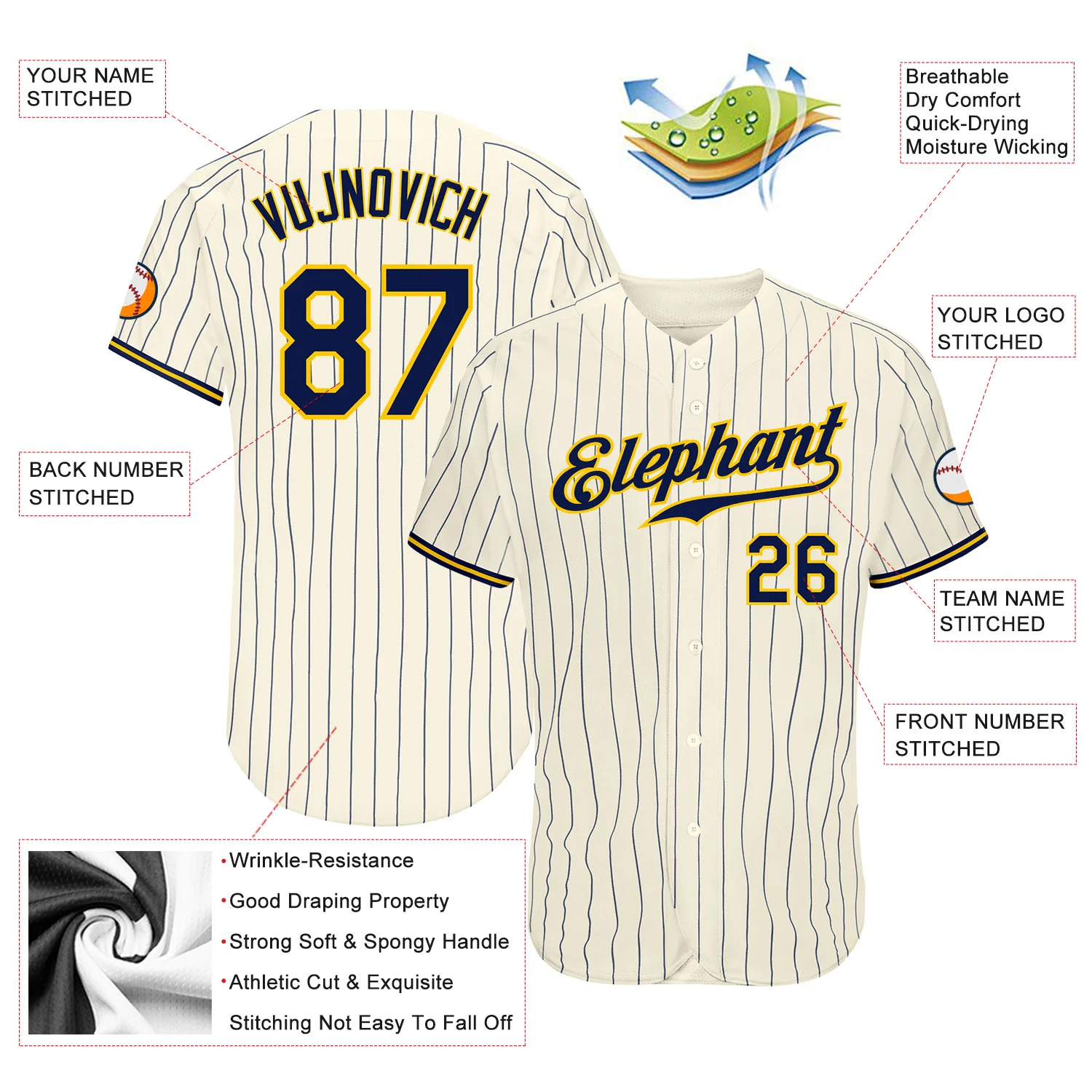 Custom Cream Navy-Gold Authentic Baseball Jersey